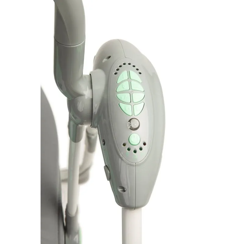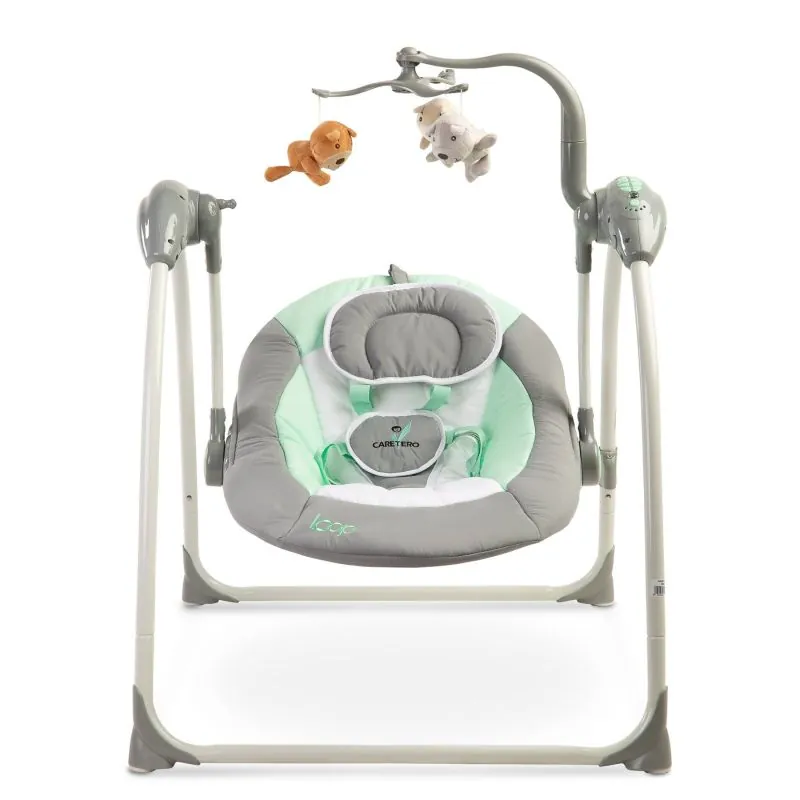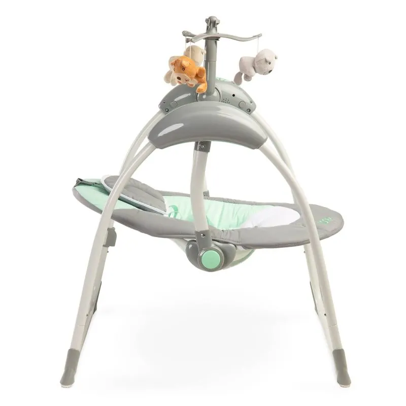 Ātri un viegli salokāms;Izturīgs un stabils rāmis;5 drošības jostas;5 šūpošanās ātrumi;Iespēja vadīt attālināti;Karuselis ar jautrām un spilgtām plīša rotaļlietām;Mierīgas pasteļkrāsas;Nepieciešamas 4xAA 1.5V baterijas.