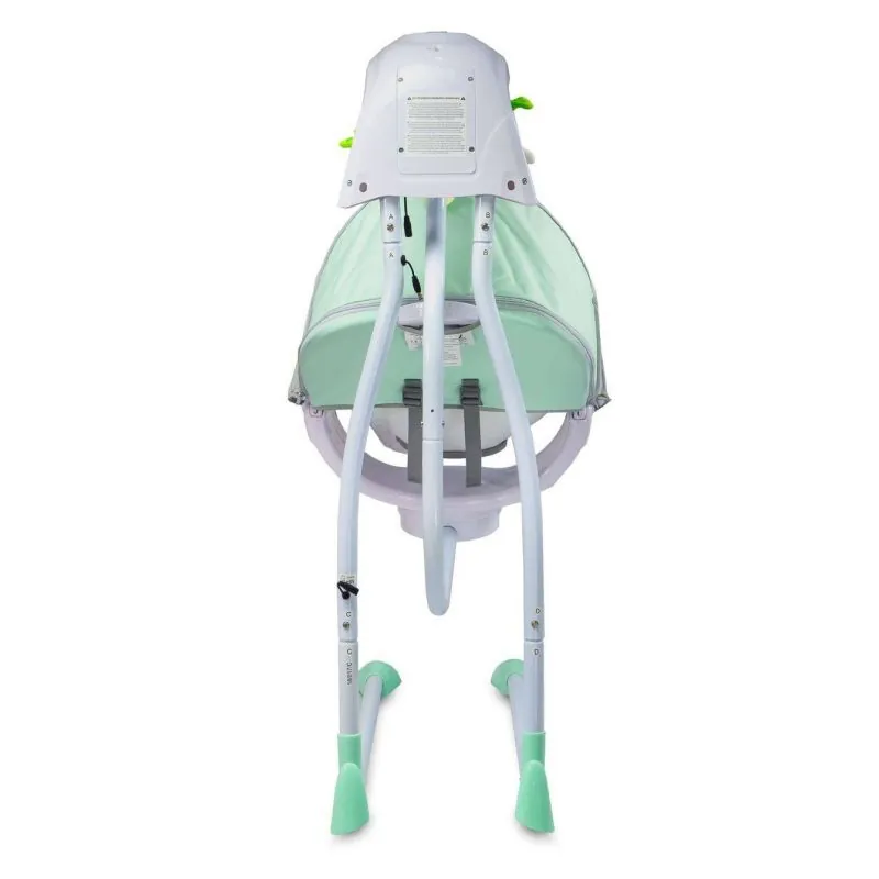 Divpakāpju atzveltnes regulēšana ļauj bērnu novietot guļus vai pussēdus stāvoklī. Pagriežot sēdekli par 90 grādiem (pa kreisi vai pa labi), varat mainīt šūpošanās veidu (no labās uz kreiso uz priekšu un atpakaļ).„Bugies“ ir arī ar noņemamu moskītu tīklu ar pārsegu un to var darbināt ar baterijām, tāpēc to ir viegli izmantot ārā.Šūpoles ir paredzētas bērniem no pirmajām dzīves dienām, kuri sver līdz 12 kg;Iespēja ātri salocīt šūpoļu rāmi, lai to būtu viegli uzglabāt;Divu līmeņu atzveltnes slīpuma regulēšana ļauj pielāgot sēdekli atbilstoši pašreizējām bērna vajadzībām;Rotējošs karuselis ar interesantām rotaļlietām un lampām palīdz attīstīt bērna uzmanību.Centrālais vadības modulis, ko darbina baterijas (4 x LR20) vai no komplektā iekļautā strāvas avota (220V elektrotīkls);5 šūpošanās ātrumi un taimeris, kas ļauj automātiski izslēgt šūpošanos pēc 8, 15 vai 30 minūtēm;Iebūvētas melodijas un dabas skaņas.Šūpoļu lietošanas drošību nodrošina izturīgas 5 punktu drošības jostas;Krāsainais polsterējums ir izgatavots no smalka, patīkama pieskārienam auduma;Izturīga un stabila šūpoļu rāmja struktūra nodrošina ilgstošu drošu lietošanu;„Bugies“ šūpoles atbilst standartiem EN 16232, EN 71