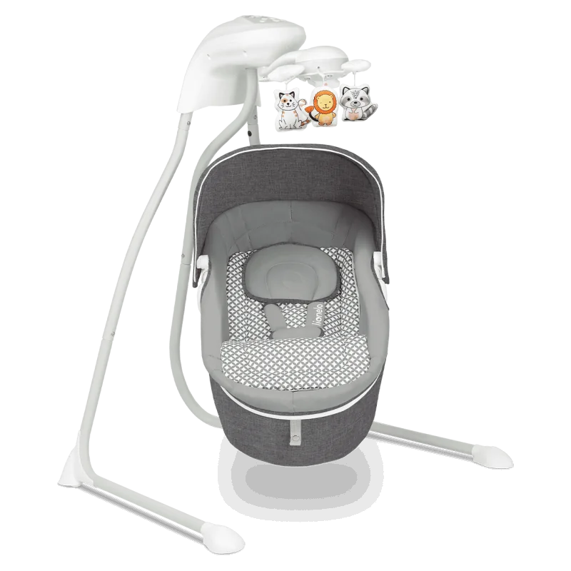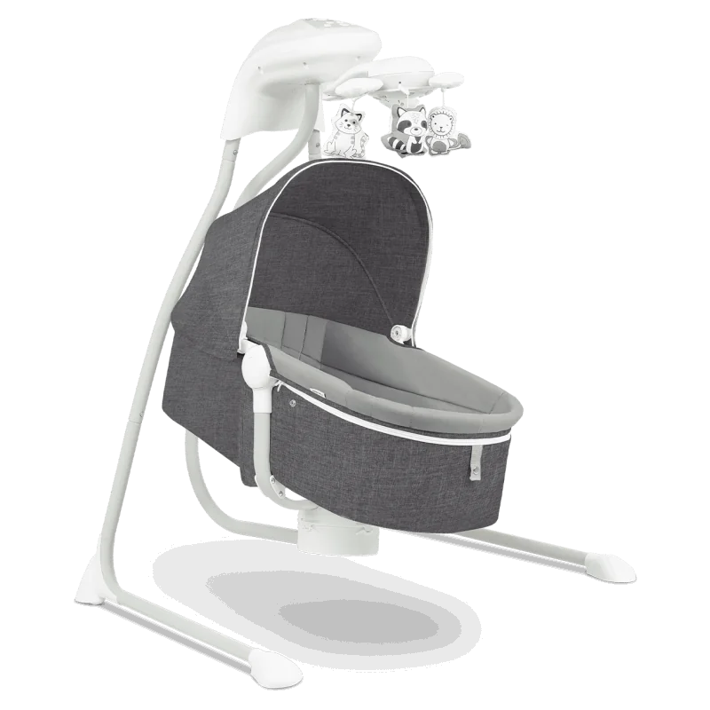 Šūpoles ar rotaļlietām un projektoru, kas izstaro 7 krāsu gaismas.Papildus 12 iebūvētām Henny melodijām un dabas skaņām, varat klausīties iecienītās dziesmas MP3 formātā, pievienojot atskaņotāju ar USB spraudni.3 pakāpju atzveltnes regulēšana, lai nodrošinātu pareizu bērna pozīciju miegā un spēlē.Integrēts taimeris ļauj iestatīt šūpošanās laiku uz 8, 15 un 30 minūtēm. Tāpat regulēt tā ātrumu atbilstoši bērna svaram.Pateicoties 3 pakāpju regulējamai atzveltnei, mīksto šūpuli var viegli pārvērst dziļā sēdeklī.Henny automātiski pielāgo šūpošanās diapazonu atbilstoši bērna svaram.Regulējamas 5 punktu siksnas nodrošinās drošību.Var izmantot no pirmajām bērna dzīves dienām.Sēdekļa pagriešana par 90°.Īpaši kluss mehānisms nodrošina vienmērīgu un maigu šūpošanos.Izturīgs tērauda rāmis garantē produkta stabilitāti.Tradicionālā šūpuļa struktūra (KangooComfort) palielina bērna komforta sajūtu.5 punktu siksnas nodrošina mazuļa drošību.Henny modelim tika veikta vairāku posmu pārbaude un testi SGS sertifikācijas laboratorijā.Tas atbilst stingrām Eiropas drošības standarta EN 12790 prasībām.Šūpulis komplektēts ar moskītu tīklu.Lietošana līdz 9kg.Barošana: baterijas vai tīkls,bateriju tips un skaits: 4 x R20 (D),barošanas tips - 5,8V 800mA, baterijas nav iekļautasProdukta izmēri: 118,5 x 102 x 89,5 cm__ETS_EMBED_MQ==__