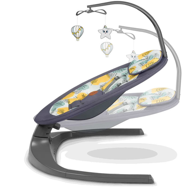 Šūpošanas virziens: labais-kreisais2 pakāpju atzveltnes slīpuma regulēšanaAutomātiska kustības noteikšanaNo dzimšanas līdz 9 kg (vai līdz brīdim, kad sāk sēdēt pats)Šūpošanās bloķētājs (noraidīšanas funkcija)5 soļu šūpošanās ātruma regulēšanaTaimeri var iestatīt uz 8, 15 vai 30 minūtēmMūzikas atskaņošana – 12 nomierinošas melodijasPlaša, piemērota kontūrēta atzveltneMīksts, ērts galvas spilvens5 punktu drošības jostasVadība ar skārienjutīgu vadības paneli vai tālvadības pultiStienis ar divām rotaļlietāmNoņemams un mazgājams pārvalksBarošana no baterijas vai tīkla - USB ieeja