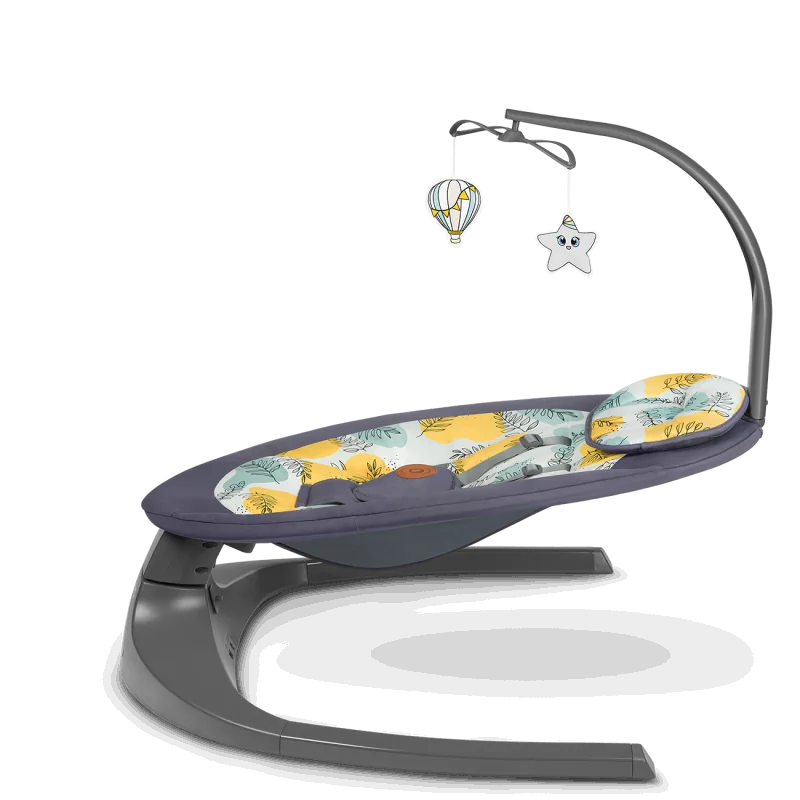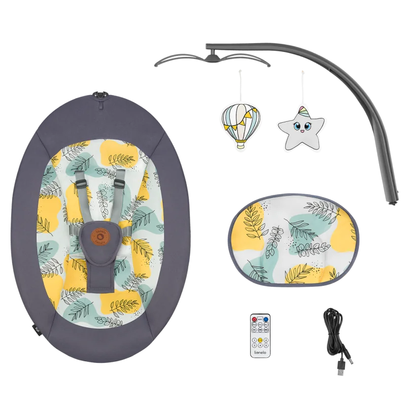 Šūpošanas virziens: labais-kreisais2 pakāpju atzveltnes slīpuma regulēšanaAutomātiska kustības noteikšanaNo dzimšanas līdz 9 kg (vai līdz brīdim, kad sāk sēdēt pats)Šūpošanās bloķētājs (noraidīšanas funkcija)5 soļu šūpošanās ātruma regulēšanaTaimeri var iestatīt uz 8, 15 vai 30 minūtēmMūzikas atskaņošana – 12 nomierinošas melodijasPlaša, piemērota kontūrēta atzveltneMīksts, ērts galvas spilvens5 punktu drošības jostasVadība ar skārienjutīgu vadības paneli vai tālvadības pultiStienis ar divām rotaļlietāmNoņemams un mazgājams pārvalksBarošana no baterijas vai tīkla - USB ieeja