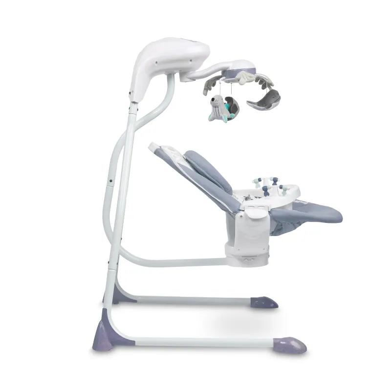 Divpakāpju atzveltnes regulēšana ļauj bērnu novietot guļus vai pussēdus. Pagriežot sēdekli par 90 grādiem (pa kreisi vai pa labi), jūs varat mainīt šūpošanās veidu (no labās uz kreiso uz priekšu un atpakaļ);