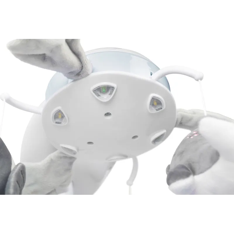 Rotējošs karuselis ar interesantām rotaļlietām un lampām palīdz attīstīt bērna uzmanību;