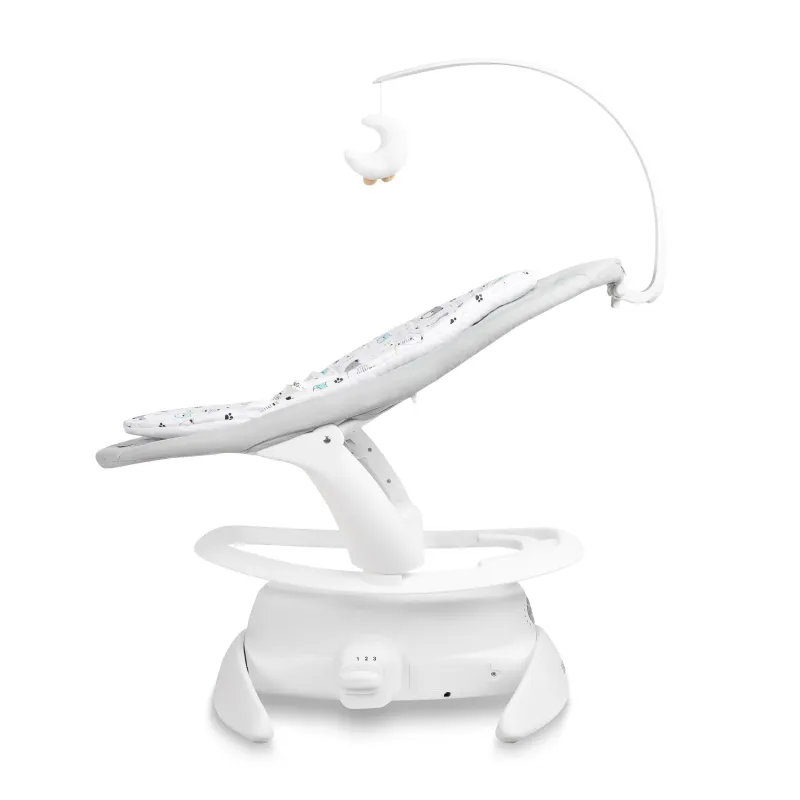 Ergonomisks šūpuļkrēsls zīdaiņiem no dzimšanas līdz 9 kilogramiem;Šūpošanas un lēkšanas krēsla funkcija vienā;Plaša kontūra sēdeklis nodrošina bērnam ērtu pozīciju;3 dažādas šūpošanas funkcijas un 5 dažādi ātrumi;Šūpuļkrēsls darbojas ļoti klusi, nodrošinot, ka tas nepamodina bērnu un netraucē vecākiem;360° rotējošs sēdeklis ļauj mainīt šūpošanas virzienu un uzturēt acu kontaktu ar mazuli;Rotējošs sēdeklis ļauj regulēt sviras pozīciju ar vienu kustību, nav nepieciešams pārvietot visu šūpuļkrēslu;Ņemot vērā mainīgās zīdaiņa vajadzības, šūpuļkrēslam ir 2 dažādi slīpuma leņķi;Zīdaiņa komfortu nodrošina mīksts spilvens, kas veicina ergonomisku pozīciju;Integrēts moskītu tīkls ar jumtiņu nodrošina efektīvu aizsardzību pret kukaiņiem gan guļot, gan spēlējoties ārā;Kustības noteikšanas režīms automātiski ieslēdz ierīci, tiklīdz tā konstatē jūsu bērna kustību;Pievienotā tālvadības pults ļauj ērti vadīt attālināti;Lai zīdainis būtu jautrs, šūpuļkrēsls ir aprīkots ar regulējamu rotaļlietu joslu un pat 11 iepriekš ielādētām melodijām;Polsterējums ir noņemams un mazgājams, tāpēc produkta tīrīšana ir vienkārša;Audums ir drošs un patīkams pieskārienam;Šūpuļkrēsla 5 punktu jostas nodrošina augstākā līmeņa zīdaiņa aizsardzību;Barošana ar vadu vai 4 AA baterijām.