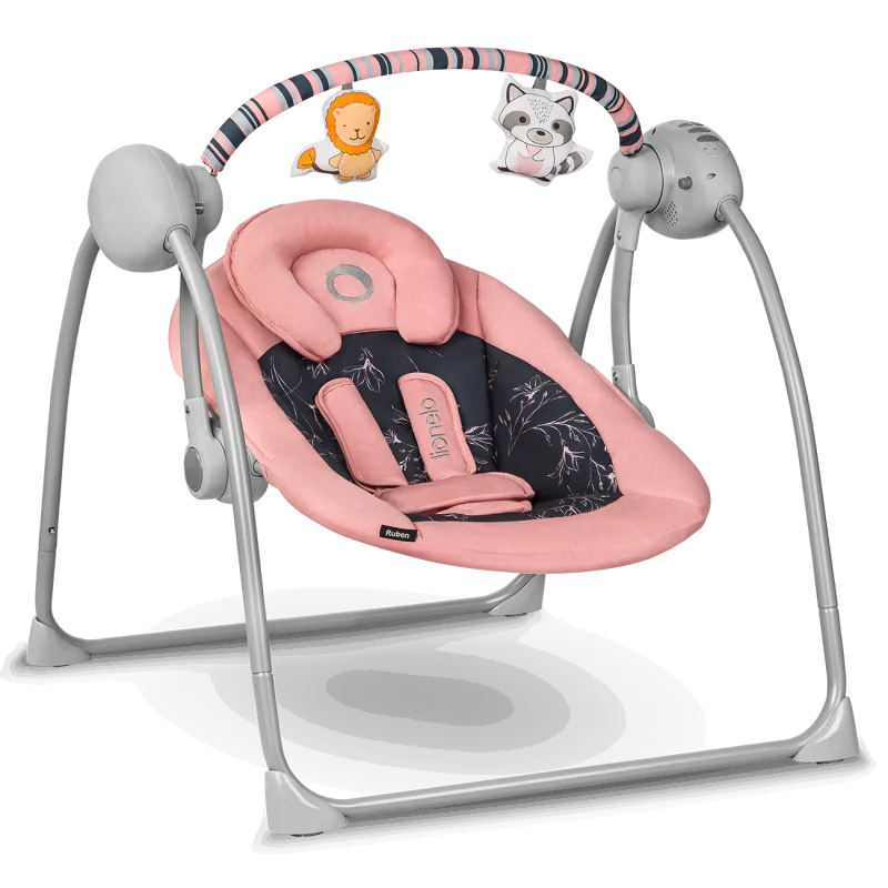 Stabila konstrukcija. Rāmis izgatavots no kvalitatīva metāla, kas ilgstošas lietošanas laikā nedeformēsies.Viegla salocīšana. Sviras konstrukcija aprīkota ar ērtu salocīšanas sistēmu.Neslīdošas kājiņas novērš nejaušu sviras kustību un aizsargā parketu no skrāpējumiem.Ļoti kluss mehānisms ļauj vieglāk iemidzināt bērnu un netraucē mājiniekiem.2 pakāpju atzveltnes regulēšana nodrošina, ka bērns vienmēr guļ dabiskā un pareizā pozīcijā.Nomierinoša mūzika nodrošinās jūsu bērnam labu garastāvokli un iemidzinās. „Ruben“ ir 10 šūpuļdziesmas un 2 dabas skaņas.Skaņas stiprumu var brīvi regulēt.Taimeris ļauj ieprogrammēt automātisku šūpošanas funkcijas izslēgšanu pēc 8, 15 vai 30 minūtēm.5 šūpošanas ātrumi. Šūpošanas tempu var regulēt atbilstoši bērna garastāvoklim. Iestatījumu maiņa ir ļoti vienkārša un aizņem tikai dažas sekundes.SpeedControlMode sensors. Īpašs sensors regulē šūpošanas ātrumu atbilstoši bērna svaram.5 punktu jostas nodrošina lielāku drošību – garantē, ka bērns neizkristu no šūpolēm. Īpaši jostu pārklājumi aizsargā no maigas bērna ādas berzes.Mīksta atzveltne ar galvas balstu nodrošina pareizu ķermeņa pozīciju un atbalstu bērna galvai.Karājošās rotaļlietas izgatavotas no mīkstiem materiāliem. Odu tīkls.Pierādīta kvalitāte. Izstrādājumam veikta vairāku posmu pārbaude – tas izturējis gan iekšējo kontroli, gan testus neatkarīgā sertifikācijas laboratorijā – SGS. Pilnībā atbilst Eiropas drošības standartam EN 16232.