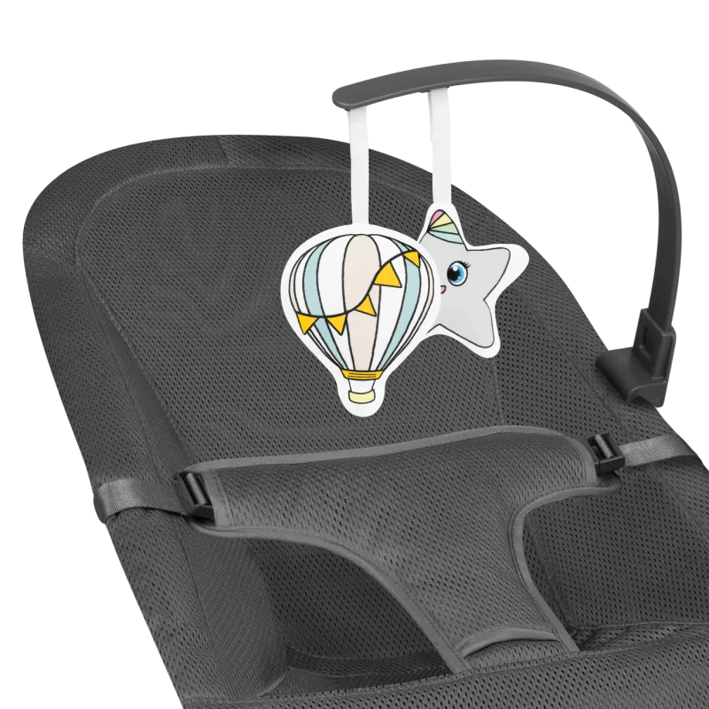 Dabiska, līdzsvarojoša šūpošanās kustībaPiemērots bērna mugurkaula atbalstsNoņemams stienis ar divām rotaļlietāmNo dzimšanas līdz bērna svaram 9 kg (vai līdz brīdim, kad viņš sāk sēdēt pats)3 punktu drošības jostas ar mīkstu pamatni un regulējamu platumuDroša vieta spēlēšanai un atpūtaiViegls svarsStabila konstrukcijaNeslīdoši elementi grīdas aizsardzībaiPlakana salocīšanas sistēmaMīksti materiāli, patīkami maigai bērna ādaiAtbilst EN 12790 standartam