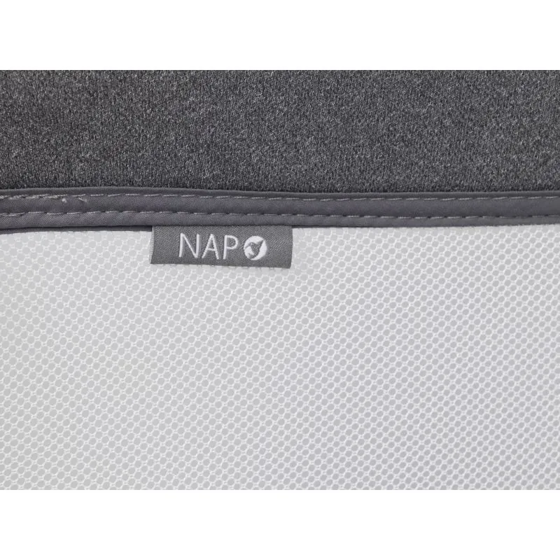 Tā dēļ bērns var droši un ērti pavadīt nakti kopā ar vecākiem. Sānu gultiņa/šūpulis lieliski pieguļ vecāku gultai pateicoties siksnu sistēmai un pat 9 augstuma iestatījumiem. Gultai ir viena atverama puse, kas ļauj viegli un ērti piekļūt bērnam. Speciāls 15 cm augsts bortelis neļauj bērnam uzkāpt uz vecāku matrača. Tāpēc bērns ir drošībā.Pateicoties šūpulim, jūs varēsiet labāk kontrolēt savu un mazuļa darbību, un nakts barošana būs mazāk apgrūtināta. Jūs varat ērti barot mazuli neatstājot gultu.Šūpulis NAP var tikt izmantots arī kā tradicionāla brīvi stāvoša bērnu gultiņa. Viens no gultas sāniem ir izgatavots no tīkla, kas ļauj bērnu labāk redzēt guļot.2 pakāpju augstuma atšķirības funkcija ļauj regulēt gultiņas līmeni tā, lai mazuļa galva būtu augstāk, kas atvieglo elpošanu un neļauj mazulim aizrīties. Ļoti noderēs, ja ir augšējo elpceļu infekcijas vai atgrūšana pēc ēšanas.Gultiņas un matrača iekšpuse ir izklāta ar augstas kvalitātes kokvilnu. Matracim ir stiprinājuma plāksne un tas ir izgatavots no ļoti elastīga porolona, kura cietība ir pielāgota bērniem, kas sver līdz 9 kg. NAP šūpulis – ērts un drošs miegs jums un jūsu bērnam.