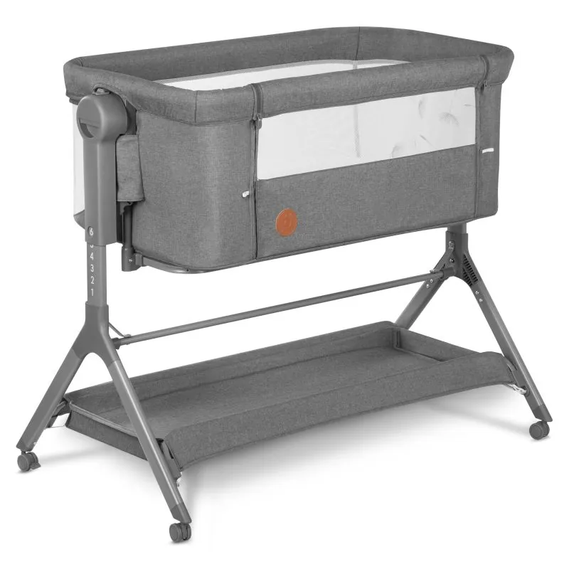 Izturīga piestiprināšana pie vecāku gultas ar drošības jostām ar auklu.Uzstādīšana ir ļoti vienkārša un aizņem tikai dažus mirkļus.Augstuma fiksators neļauj patvaļīgi mainīt augstumu.Plašs tīkls garajos sānos nodrošina pienācīgu gaisa cirkulāciju un bērna redzamību.Pilnībā atbilst Eiropas drošības standartiem EN 1130 un EN 16890.5 līmeņu augstuma regulēšana ļauj pielāgot gultu jebkura veida gultai.Slīpuma leņķa regulēšana atvieglo jūsu mazuļa aizmigšanu.Noņemama sānu siena ļauj izmantot bērnu gultiņu kā papildgultu, un, paceļot sienu, kā brīvi stāvošu gultu.Šūpuļa funkcija – pateicoties rotējošiem kāju galiem, šūpuli var viegli pārvērst par mazuļa šūpuli, kas ļauj maigi, mierīgi šūpoties.Ērts matracis ar noņemamu pārvalku, 50 x 87 cm izmēra un 3 cm biezs.Piemērota biezuma matracis, lai atbalstītu bērna mugurkaulu.Elpojošs materiāls pārvalka apakšā.Plaša šūpuļa forma, kas izgatavota no stepēta, mīksta materiāla, ļauj bērnam tajā justies droši un ērti.Riteņi kustībai garantē pilnīgu mobilitāti jebkurā laikā, bet stabilas kājas – stabilitāti.