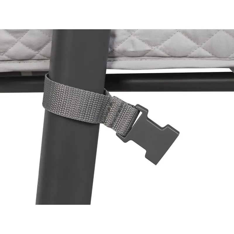 Pateicoties šūpulim, bērns droši un ērti pavadīs naktis blakus vecākiem;Lieliski pieguļ vecāku gultai ar siksnu palīdzību;Ir pat 9 regulējamas augstuma pozīcijas;L burta forma ļauj vēl labāk piegult pie jūsu gultas;Automātiskā teleskopiskā apakšējo balstu garuma regulēšanas sistēma palīdzēs precīzi pievilkt šūpuli arī pie gultām, kurām nav papildu vietas no grīdas;Byside šūpuļa viena puse atverama ar rāvējslēdzēju, tāpēc ērti sasniegsiet mazuli;Papildu 15 cm aizsargbarjera, tāpēc bērns ir drošs, jo gan viņam, gan jums būs sava guļvieta;Pateicoties šai gultiņai, varēsiet vieglāk kontrolēt bērna miegu, un arī nakts barošana būs mazāk apgrūtināta;Varēsiet ērti barot mazuli, neizkāpjot no savas gultas;Šūpulis var tikt izmantots arī kā standarta gultiņa, viena gultas mala ir izgatavota no tīkla, tāpēc bērns būs labāk redzams;Var regulēt gultiņas līmeni tā, lai mazuļa galva būtu augstāk. Ļoti noderēs, ja ir augšējo elpceļu infekcijas vai atgrūšana pēc ēšanas;Šūpuļa iekšpuse un matracis no kvalitatīvas kokvilnas;Matracis izgatavots no kvalitatīva, elastīga porolona un ir piemērots bērniem, kas sver līdz 9 kilogramiem;