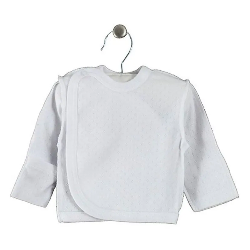 Ar garām piedurknēm;Atlokāmi cimdiņi;Aizdarāms ar spiedpogām; Izgatavots no OEKOTEX sertificētas un mīkstas 100% kokvilnas;Krāsa: balta;Ražots Lietuvā;