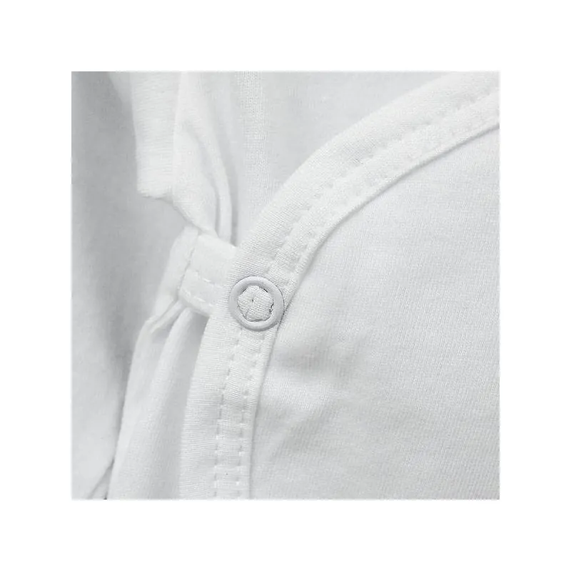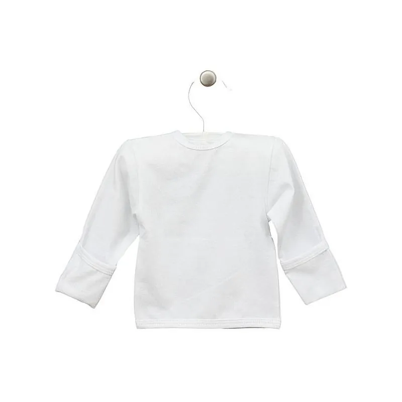 Ar garām piedurknēm;Atlokāmi cimdiņi;Aizverams ar spiedpogām; Izgatavots no OEKOTEX sertificētas un mīkstas 100% kokvilnas;Krāsa: balta;Ražots Lietuvā;