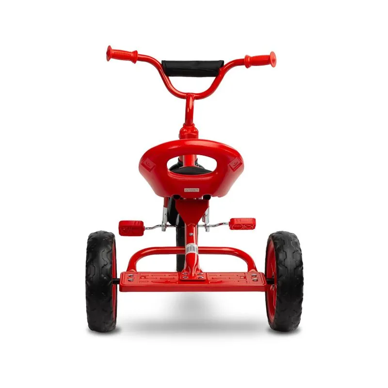 Izturīgs trīsriteņa rāmis, krāsots spilgtās, izturīgās krāsāsTklusi ripojoši, polipropilēna riteņiPpriekšējais ritenis 27 cm, aizmugurējie 22 cm. Ppie pirmā riteņa uzstādīti neslīdoši pedāļiTrīsriteņa priekšējo riteni ir ērti vadīt, tas ir īpaši manevrētspējīgsRegulējams sēdeklis ar ērtu atzveltniLviegls alumīnija konstrukcijaMaksimālais bērna svars līdz 25 kg.Kompakti izmēri: 77x48x66 cm.Ērti transportējamsSvars - 4 kg.