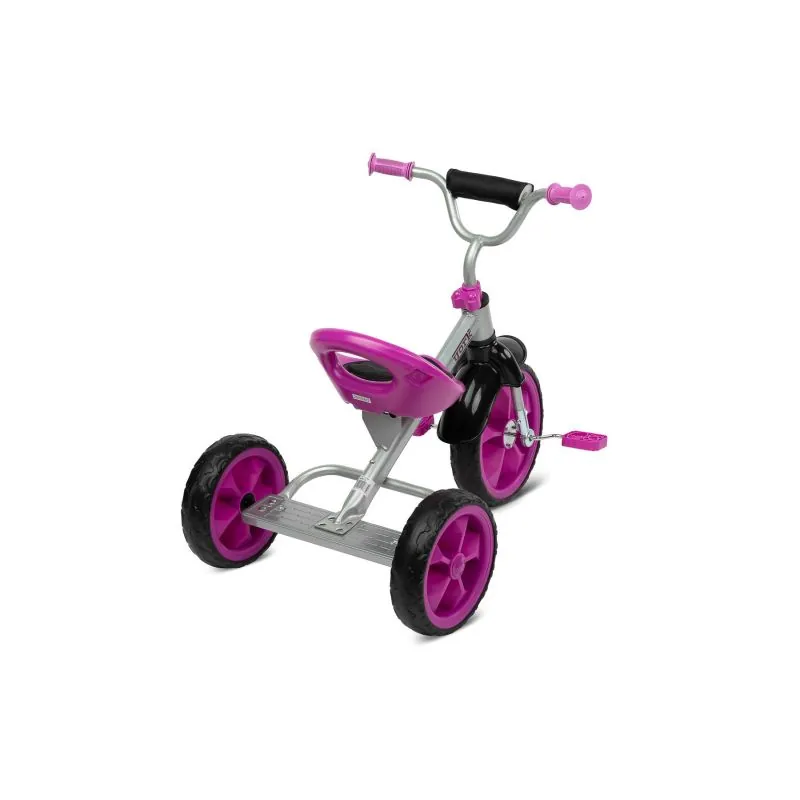 Izturīgs trīsriteņa rāmis, krāsots spilgtās, izturīgās krāsāsTklusi ripojoši, polipropilēna riteņiPrieksējais ritenis 27 cm, aizmugurējie 22 cm. Ppie priekšējā riteņa uzstādīti neslīdoši pedāļiTrīsriteņa priekšējo riteni ir ērti vadīt, tas ir īpaši manevrētspējīgsRregulējams sēdeklis ar ērtu atzveltniLviegls alumīnija konstrukcijaMaksimālais bērna svars līdz 25 kg.Kompakti izmēri: 77x48x66 cm.Ērti transportējamsSvars - 4 kg.