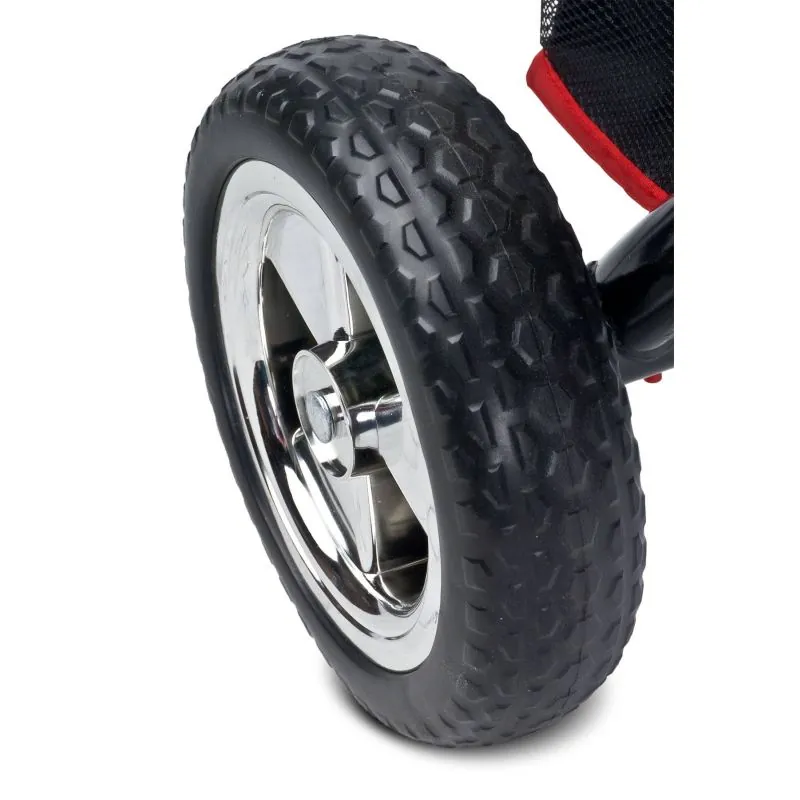 Praktisks universāls trīsritenis, kas aug kopā ar jūsu bērnu.Paredzēts 2-5 gadu veciem bērniem;Aizsargbarjera nodrošinās bērnam drošību;Kamēr bērns nav gatavs pats mīt trīsriteni - viņam noderēs kāju balsti, kurus vēlāk, kad tie vairs nav nepieciešami, var noņemt;Komplektā ir aizverams iepirkumu grozs un piestiprināma soma;Liels jumtiņš, aizsardzība pret sauli un vēju;Lieli gumijas riteņi;Noņemams stumšanas rokturis;Zvaniņš uz stūres;Maksimālais bērna svars 25 kg;Trīsriteņa svars; 8,8 kg;Izmēri: 105x98x36 cm;Priekšējā riteņa diametrs: 24 cm;Aizmugurējo riteņu diametrs: 20 cm.