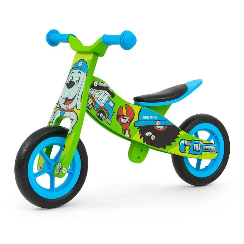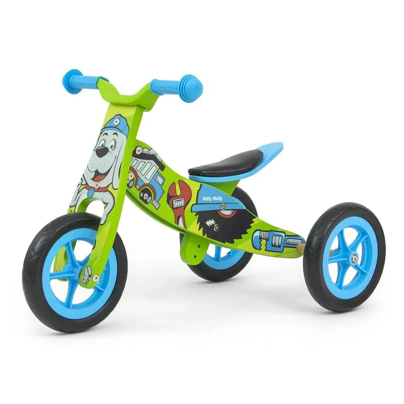 Velosipēds izgatavots no izturīga koka.Stūres apstāšanās.Neslīdoši rokturi.9" putuplasta riteņi.4 sēdekļa augstuma regulēšanas līmeņi.Vienkārši gultņi.Divu funkciju (trīsritenis vai divritenis).Maksimālā slodze 25 kg.Piemērots vecums: 18-36 mēneši.Atbilst Eiropas drošības standartiem.