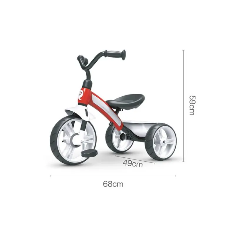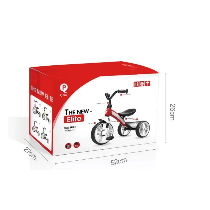QPlay Elite aprīkots ar visām ērtībām. Tam ir gan regulējams sēdeklis, gan regulējams stūre, gan izturīgi EVA riteņi. Turklāt metāla trīsritenis ir aprīkots ar grozu, lai katrs bērns varētu ņemt līdzi savas rotaļlietas.Priekšējā riteņa augstums ir 10 collas, bet aizmugurējo - 8 collas.