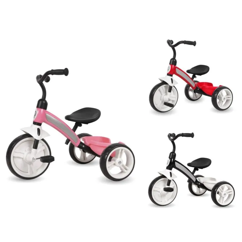 QPlay Elite aprīkots ar visām ērtībām.Tajā ir gan regulējams sēdeklis, gan regulējams stūre, gan izturīgi EVA riteņi.Turklāt metāla trīsritenim ir grozs, lai katrs bērns varētu paņemt līdzi savas rotaļlietas.Priekšējā riteņa augstums ir 10 collas, bet aizmugurējo - 8 collas.