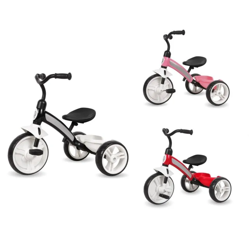 QPlay Elite aprīkots ar visām ērtībām.Tam ir gan regulējams sēdeklis, gan regulējams stūre, gan izturīgi EVA riteņi.Turklāt metāla trīsritenis ir aprīkots ar grozu, lai katrs bērns varētu paņemt līdzi savas rotaļlietas.Priekšējā riteņa augstums ir 10 collas, bet aizmugurējo - 8 collas.
