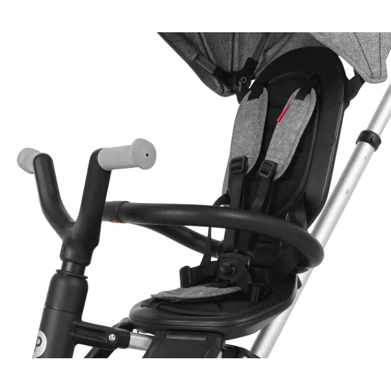 Skats uz vecākiem režīms.Skats uz pasauli režīms.Atzveltnes režīms.Pašbraukšanas režīms.Piemērots 24-72 mēnešiem.Bērna svara ierobežojums: 25 kg.Viegls, tikai 6,9 kg.360 grādu rotējošs sēdeklis uzlabo mijiedarbību.Atzveltnes regulēšana bērna ērtībai.Stumšanas stieņa augstuma regulēšana vecākiem.5 punktu drošības jostu sistēma.2 veidu kāju balsts, kas lieliski piemērots jebkuram vecumam.EVA riteņi.UPF30 jumtiņš, kas nodrošina pilnīgu aizsardzību.Viena poga pilnīgai salocīšanai un vieglai uzglabāšanai.Aizmugurējās kāju bremzes, kas nodrošina, ka trīsritenis stāv uz vietas.Stūres sajūga sistēma, lai aizsargātu jūsu bērnu.Aprīkots ar krūzīšu turētāju aizmugurē.