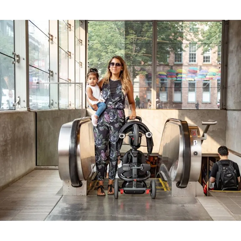 Piemērots bērniem no 1 līdz 3 gadiem, līdz 25 kg.Izturīgs rāmis.Kvalitatīvi audumi, izturīgi pret mitrumu.Pret caurduršanu izturīgas gumijas riepas, gēla pildījums nodrošina vienmērīgumu braucot.Real Gel™ riteņi: riepas ir piepildītas ar speciālu gēla materiālu, kas ļauj pagarināt riteņa lietošanas laiku un nerada papildu rūpes par riteņa kopšanu.Salokāms kāju balsts.Polsterēts sēdekļa pārvalks.5 punktu drošības jostas ar polsterētām spilventiņiem.Regulējams saules aizsargs, ar iespēju to pilnībā noņemt.Pedāļus var bloķēt, lai bērns mītu, bet neietekmētu braukšanu, vai atbloķēt, lai bērns pats mītu trīsriteni.Stūri var bloķēt, lai bērns nevarētu vadīt, un trīsritenis brauktu tikai taisni.Stumšanas rokturis regulējama augstuma. Kad bērns izaug, to var pilnībā noņemt.Transportēšanas laikā stumšanas stūri var salocīt.