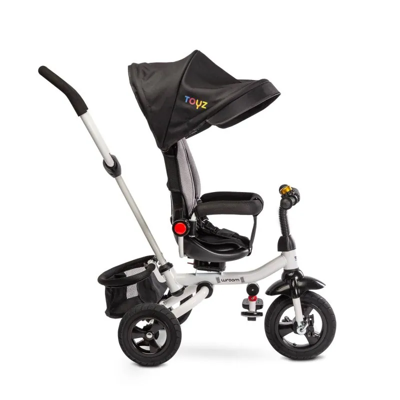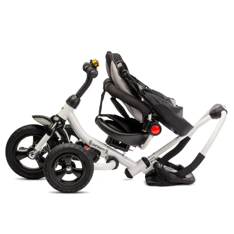 „Wroom“ - ērts trīsritenis, ko var izmantot divos veidos.Kamēr bērns ir mazs, to var vest vecāki, bet, kad viņš paaugas, viņš var braukt pats.Ir arī iespēja vest mazuli, vērstu uz priekšu vai atpakaļ, turot kājas uz salokāmas kāju balsta.Ērts sēdeklis ar augstu, mīkstu atzveltni.Noņemams buferis atvieglo iekāpšanu, un mīkstie polsterējumi nodrošina drošību un komfortu braucot.3 punktu drošības jostas ar polsterētām spilventiņiemRegulējams saules jumtiņš, var pilnībā noņemtKad bērns aizmieg, varat noliekt sēdekli, lai viņam būtu ērtāk atpūsties.Trīsritenim ir putu riteņi, tāpēc jums nebūs jāuztraucas par riepu piepumpēšanu vai pārduršanu.Abiem aizmugurējiem riteņiem ir atsevišķas bremzes.Pateicoties salokāmai velosipēda struktūrai, to ir viegli transportēt bagāžniekā un uzglabāt, kad tas netiek izmantots.Piemērots bērniem no 18 mēnešiem līdz 5 gadiem.