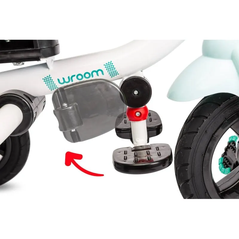 „Wroom“ - ērts trīsritenis, kas tiek izmantots divos veidos.Kamēr bērns ir mazs, to var vest vecāki, bet, kad viņš paaugas, viņš var braukt pats.Ir arī iespēja vest mazuli, vērstu uz priekšu vai atpakaļ, kamēr kājas tiek turētas uz salokāmas kāju balsta.Ērts sēdeklis ar augstu, mīkstu muguras balstu.Noņemams stienis atvieglo iekāpšanu, un mīkstie polsterējumi nodrošina drošību un komfortu braucot.3 punktu drošības jostas ar polsterētām spilventiņiemRegulējams saules jumtiņš, var pilnībā noņemtKad bērns aizmieg, varat noliekt sēdekli, lai viņam būtu ērtāk atpūsties.Trīsritenim ir putu riteņi, tāpēc jums nebūs jāuztraucas par riepu piepumpēšanu vai pārduršanu.Abiem aizmugurējiem riteņiem ir atsevišķas bremzes.Pateicoties salokāmai velosipēda struktūrai, to ir viegli transportēt bagāžniekā un uzglabāt, kad tas netiek izmantots.Piemērots bērniem no 18 mēnešiem līdz 5 gadiem.