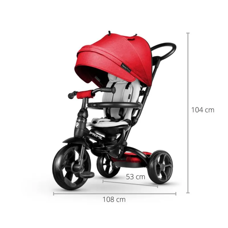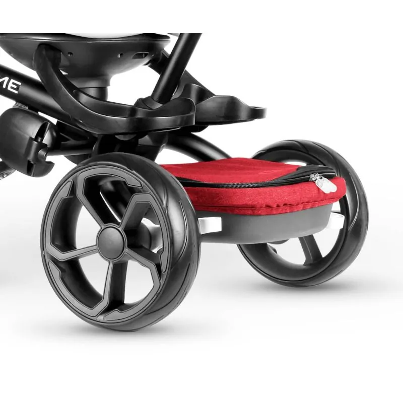 Pagriežams sēdeklis, vadība ar pogas nospiešanu – braukšana uz priekšu vai atpakaļ.Regulējamas teleskopiskās roktura vadība ar rokturi (2 soļi).Iespēja salocīt stūri.Priekšējā brīvgaitas ieslēgšanas/izslēgšanas sistēma.Funkcija "brīvais stūris" vadāma ar rokturi.Piecu punktu drošības jostas ar plecu spilventiņiem.Mīksts un elpojošs sēdekļa spilvens ar konturētu bērna galvas aizsardzību.Ērts, 2 soļos regulējams atzveltnis, guļus pozīcija.Noņemams sēdekļa pārvalks.Salokāms pārsegs + noņemams jumtiņš no materiāla, kas aizsargā pret UV stariem ar logu.EVA mīkstie riteņi.10,5" putu priekšējais ritenis.Putu aizmugurējie riteņi 8,5".Augstas kvalitātes tērauda rāmis.Priekšējam ritenim ir pārsegs, lai kāja neiekļūtu.Aizmugurējā soma ar rāvējslēdzēju.Viegls tīrāms, noņemams aizsargstienis.Neslīdoši pedāļi.Papildu kāju platforma mazākiem bērniem.Zīdaiņa kāju balsts.Gumijas neslīdoši rokturi.Riteņi ar gultņiem.Aizmugurējā riteņa bremze.Pagrieziena ierobežotājs.Jostu regulēšana.Pārsegs ir vietā, noņemot vecāku rokturi.Vecums 10-72 mēneši.Tas atbilst stingriem Eiropas drošības standartu prasībām.