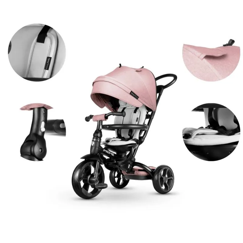 Pagriežams sēdeklis, vadība ar pogas nospiešanu – braukšana uz priekšu vai atpakaļ.Regulējams teleskopiskais rokturis ar roktura vadību (2 soļi).Iespēja salocīt stūri.Priekšējā brīvgaitas ieslēgšanas/izslēgšanas sistēma.Funkcija "brīvais stūris" vadāma ar rokturi.Piecu punktu drošības jostas ar plecu spilventiņiem.Mīksts un elpojošs sēdekļa spilvens ar konturētu bērna galvas aizsardzību.Ērts, 2 soļos regulējams atzveltne, guļus pozīcija.Noņemams sēdekļa pārvalks.Salokāms pārsegs + noņemams jumtiņš no materiāla, kas aizsargā no UV stariem ar logu.EVA mīkstie riteņi.10,5" putu priekšējais ritenis.Putu aizmugurējie riteņi 8,5".Augstas kvalitātes tērauda rāmis.Priekšējam ritenim ir vāks, lai pēda neiespiestos.Aizmugurējais maiss ar rāvējslēdzēju.Viegli tīrāms, noņemams aizsargstienis.Neslīdoši pedāļi.Papildu kāju platforma mazākiem bērniem.Zīdaiņa kāju balsts.Gumijas neslīdoši rokturi.Riteņi ar gultņiem.Aizmugurējā riteņa bremze.Pagrieziena ierobežotājs.Jostu regulēšana.Vāks ir vietā, noņemot vecāku rokturi.Vecums 10-72 mēneši.Tas atbilst stingriem Eiropas drošības standartu prasībām.