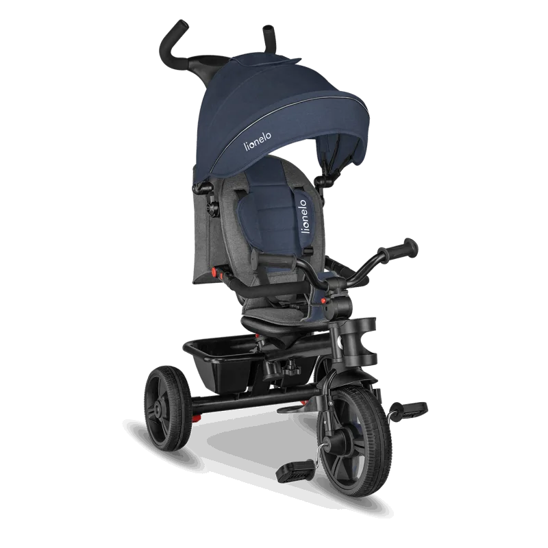 3 punktu jostas uztur pareizā pozīcijā.Stienis nodrošina papildu aizsardzību. Trīsritenim uzstādīti neslīdoši rokturi.Atstarotāji uz jumtiņa (aizsardzība pret lietu un sauli) uzsver trīsriteņa Lionelo Haari redzamību uz ceļa! Atbilst Eiropas standartam EN 71.Ērts kāju balsts. Riteņi ir izturīgi, izturīgi pret mehāniskiem bojājumiem.Piedāvā labu saķeri ar zemi.Regulējams rokturis lieliski pielāgosies augumam.Viegli salokāms transportēšanai vai uzglabāšanai. Patīkami polsterējumi nodrošinās bērna komfortu braucot. Komplektā grozs rotaļlietām un praktisks krūzes vai pudeles turētājs.360° sēdeklis ļauj braukt uz priekšu vai atpakaļ.