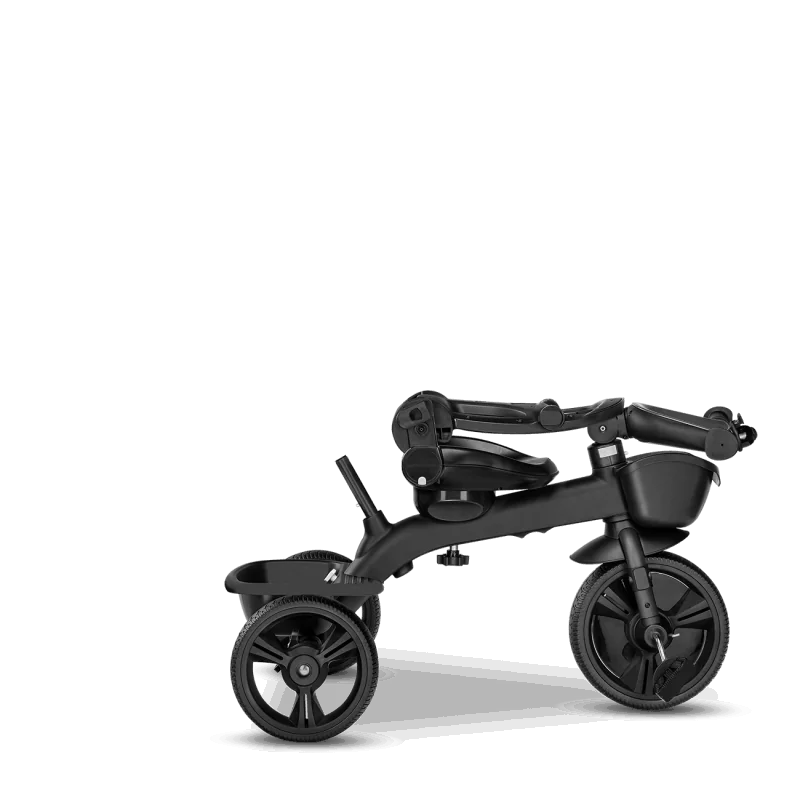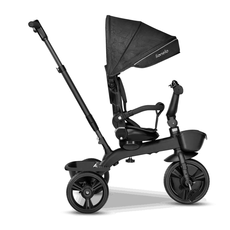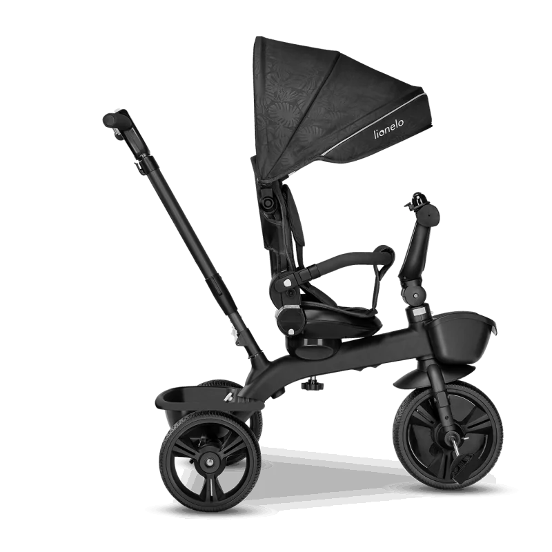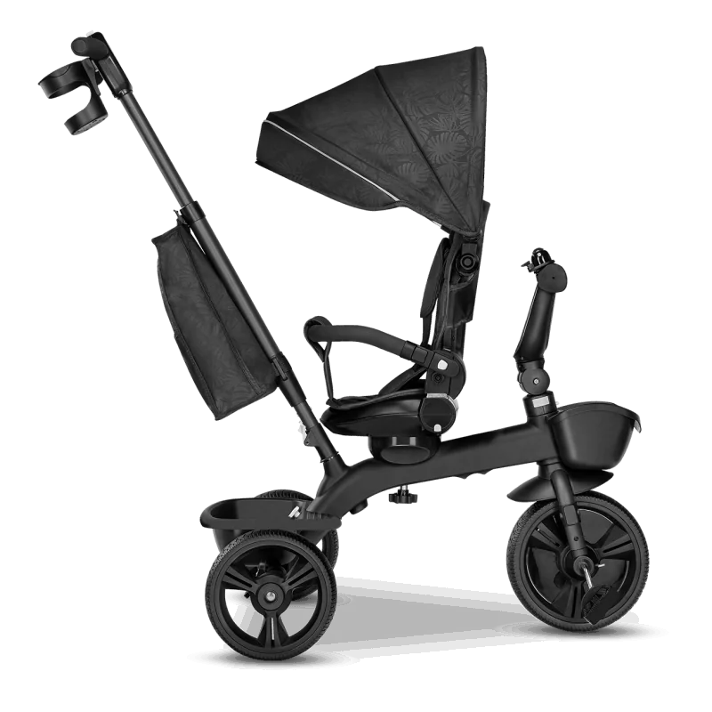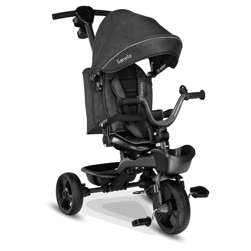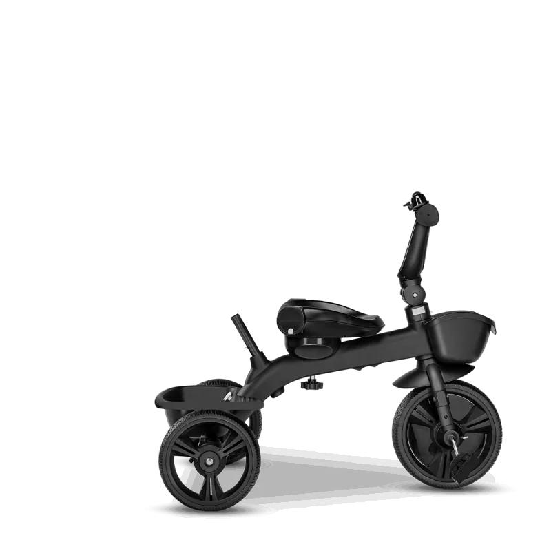 Vecāku kontrole ceļā, izmantojot rokturi.Trīsritenis vecākiem bērniem.Pagriežams sēdeklis – braukšana uz priekšu vai atpakaļ.Salokāms, pilnībā regulējams jumtiņš ar logu.Izturīga un viegla magnija sakausējuma konstrukcija.Viegli salikt.Gaismu atstarojošas detaļas lielākai drošībai.2 plaši grozi rotaļlietām, krūzīšu turētājs un slēgts maiss.Bez kameru gumijas riepas ar protektoru – lieliska saķere.Brīvgaita un stūre.Vecuma diapazons: 18 mēneši un vecākiMaksimālais bērna svars: 25 kgAtzveltnes slīpums: 3 līmeņi