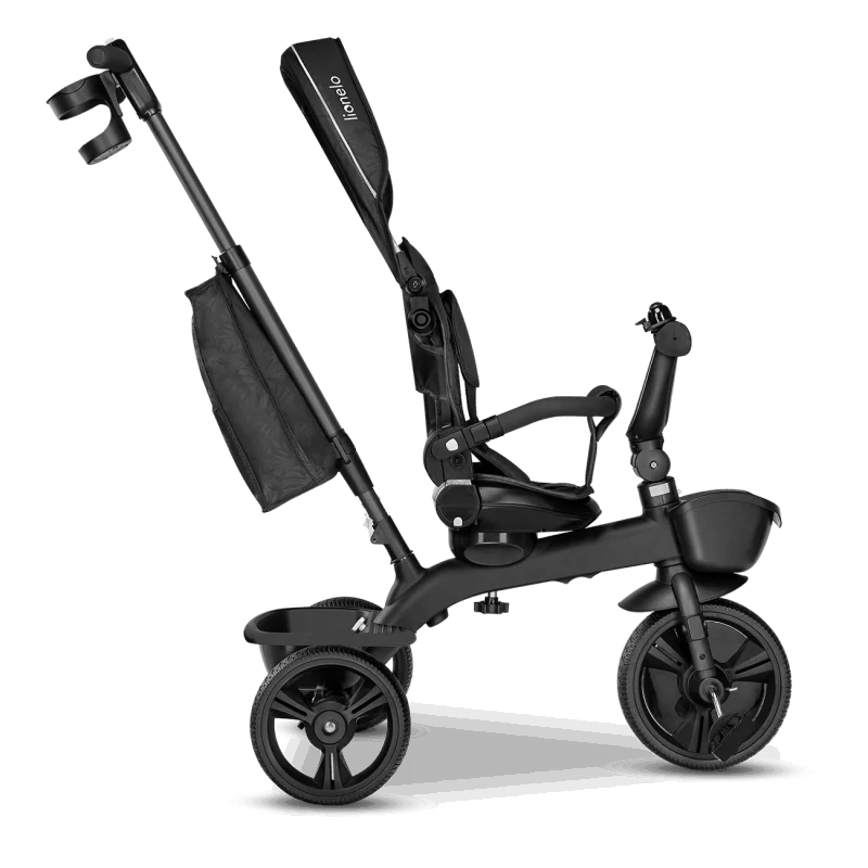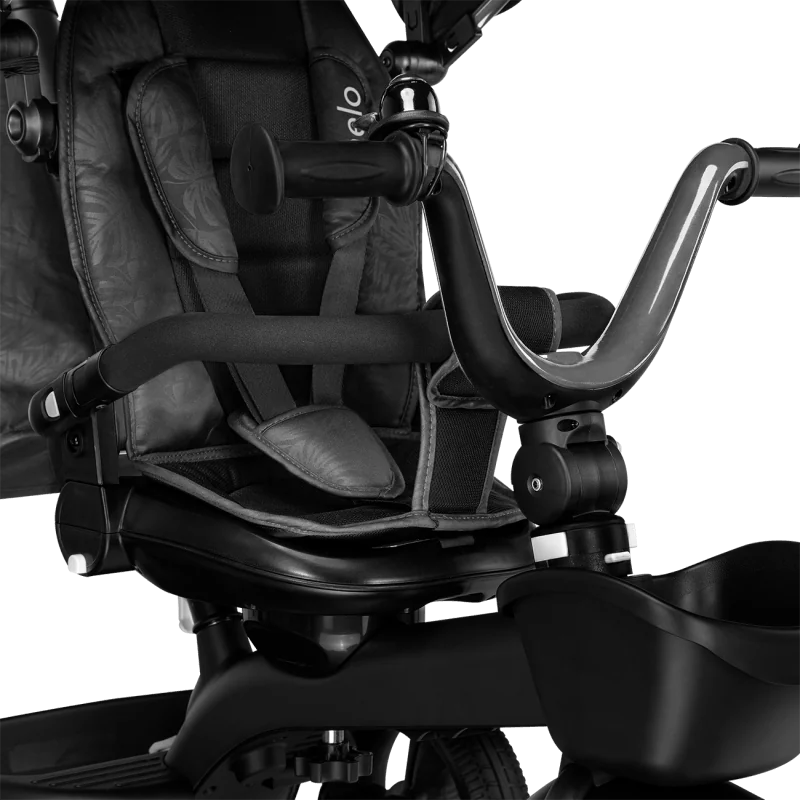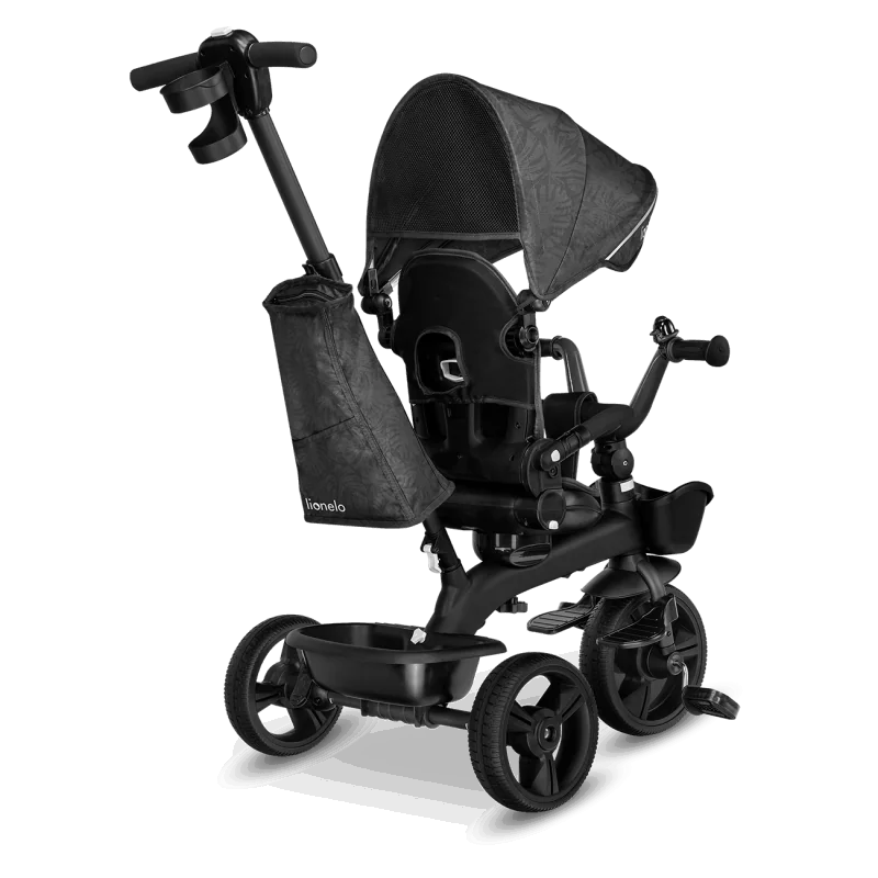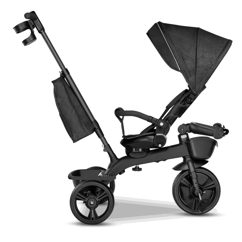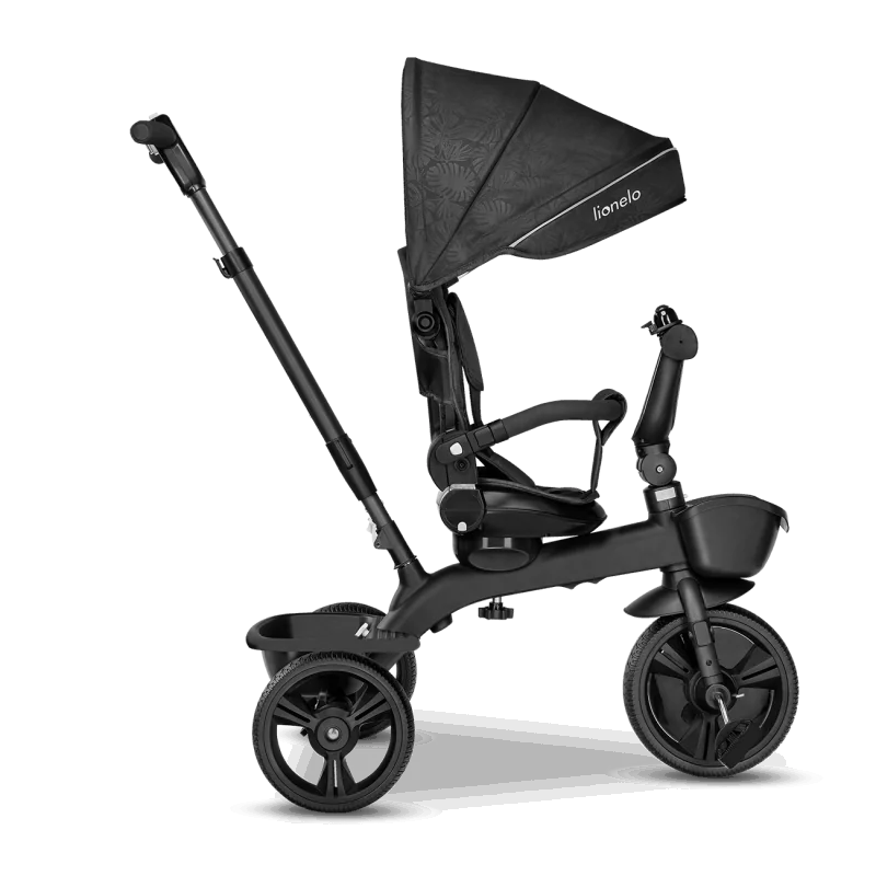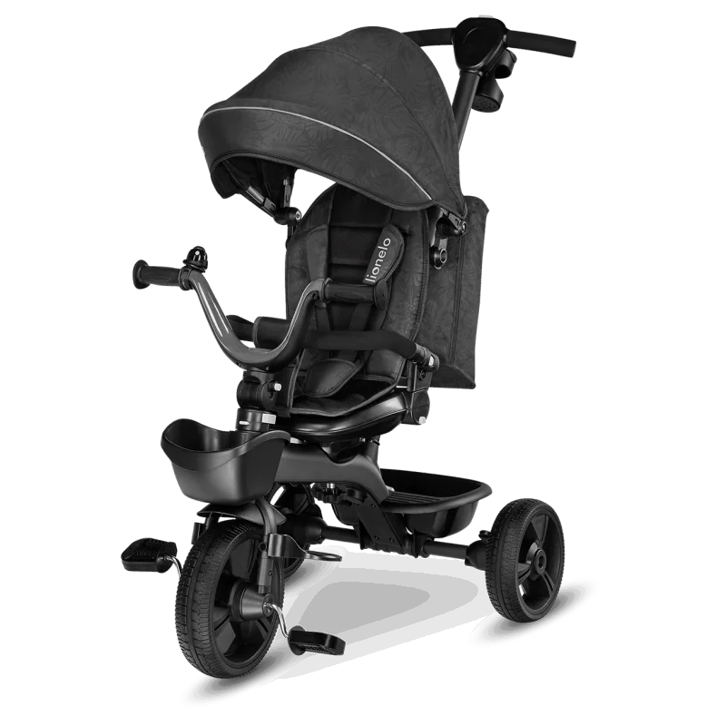 Vecāku kontrole ceļā, izmantojot rokturi.Trīsritenis vecākiem bērniem.Pagriežams sēdeklis – braukšana uz priekšu vai atpakaļ.Salokāms, pilnībā regulējams jumtiņš ar logu.Izturīga un viegla magnija sakausējuma konstrukcija.Viegli salikt.Gaismu atstarojošas detaļas lielākai drošībai.2 plaši grozi rotaļlietām, krūzīšu turētājs un slēgts maiss.Bez kameru gumijas riepas ar protektoru – lieliska saķere.Brīvgaita un stūre.Vecuma diapazons: 18 mēneši un vecākiMaksimālais bērna svars: 25 kgAtzveltnes slīpums: 3 līmeņi