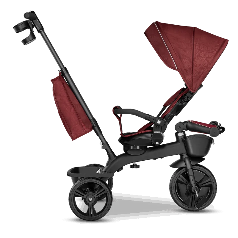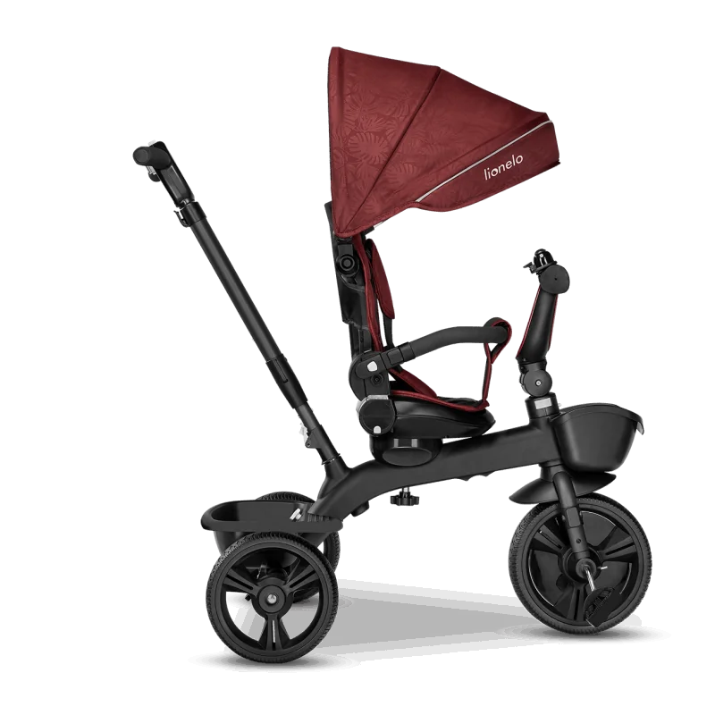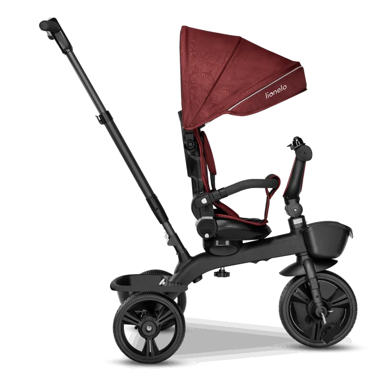 Vecāku kontrole ceļā, izmantojot rokturi.Trīsritenis vecākiem bērniem.Pagriežams sēdeklis – braukšana uz priekšu vai atpakaļ.Salokāms, pilnībā regulējams jumtiņš ar logu.Izturīga un viegla magnija sakausējuma konstrukcija.Viegli salikt.Gaismu atstarojošas detaļas lielākai drošībai.2 plaši grozi rotaļlietām, krūzīšu turētājs un slēgts maiss.Bezkameru gumijas riepas ar protektoru – lieliska saķere.Brīvgaita un stūre.Vecuma diapazons: 18 mēneši un vecākiMaksimālais bērna svars: 25 kgAtzveltnes slīpums: 3 līmeņi