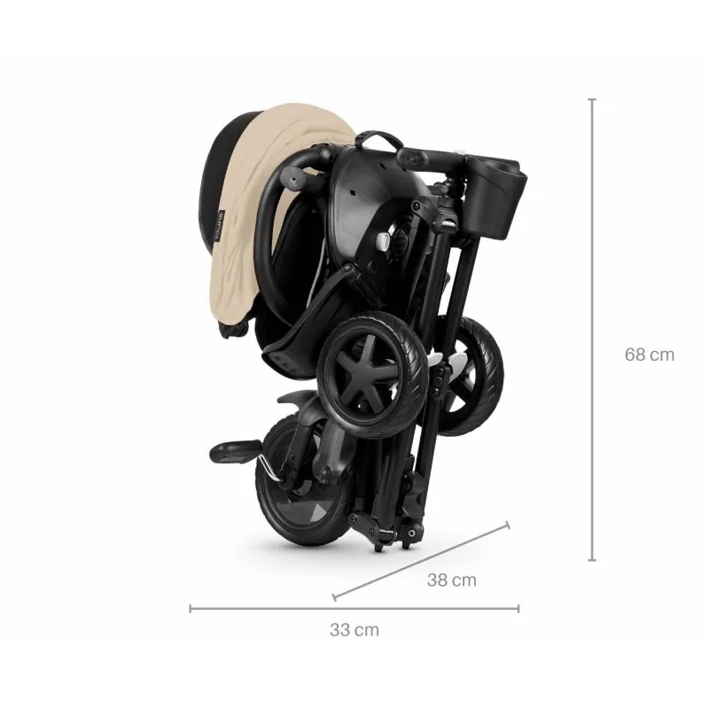 360 grādu rotējošs sēdeklis – braukšana uz priekšu vai atpakaļ.Roktura vadība3 pakāpju atzveltnes regulēšanaEVA putu riteņiPriekšējā brīvā gaita funkcijaBrīvas stūrēšanas funkcijaPiecu punktu drošības jostas ar plecu spilventiņiemĒrts augsta profila sēdeklisNoņemams sēdekļa pārvalksSaliekams jumtiņš izgatavots no 300D MG UV aizsardzības materiālaNoņemams jumtiņšAlumīnija rāmisPedāļi uz priekšējā riteņaPriekšējam ritenim ir vāks, aizsardzība pret kāju traumāmPapildu platforma kājām mazākiem bērniem, piestiprināma pie sēdekļaFiksēts krūzes/pudeles turētājs pie rokturaViegli tīrāms, noņemams aizsargbarjeraSaliekama kāju balstsGumijas neslīdoši rokturiBloķēšana – aizmugurējā riteņa bremzePagrieziena ierobežotājsJostas regulēšanaĀtrās salocīšanas sistēmaVecums 10-72 mēnešiTas atbilst stingriem Eiropas drošības standartu prasībām