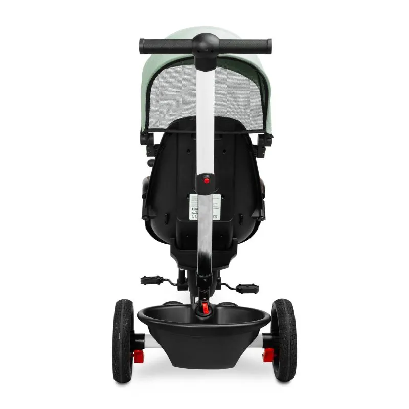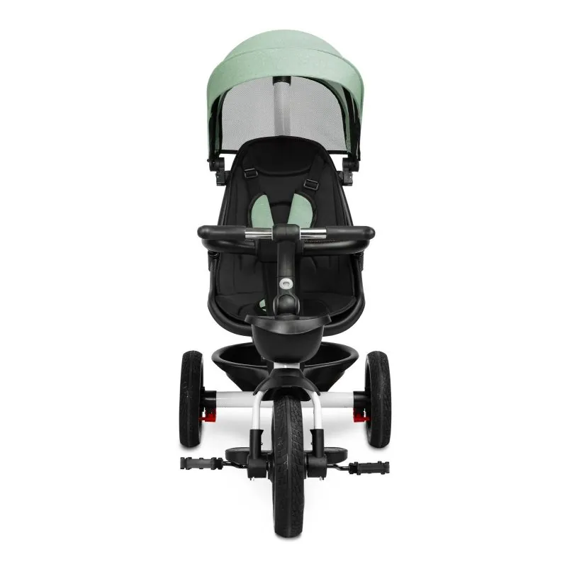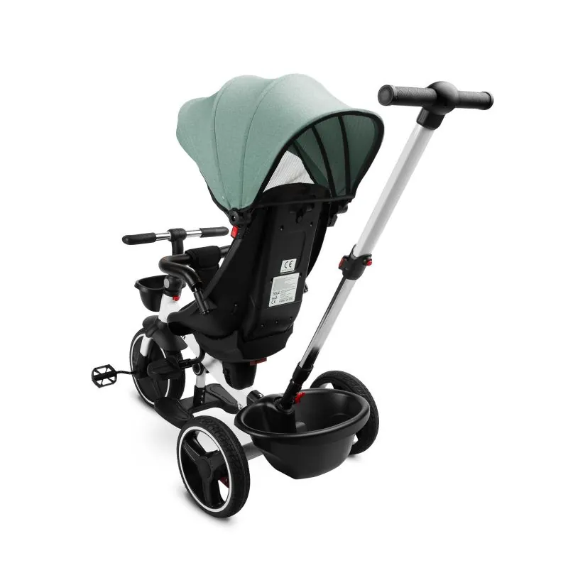 Var izmantot kā trīsriteni, ar kuru bērns var braukt viens, un kā ratiņus ar jumtiņu, kuros bērnu var vest gan uz priekšu, gan atpakaļ.Trīsriteņa priekšpusē un aizmugurē ir groziņi, kuros var nest sīkus priekšmetus.Ir 2 kāju balsti: izvirzīti no velosipēda rāmja un piestiprināti pie sēdekļa.Katrs kāju balsts ir regulējams bērna ērtībai.Velosipēda aizmugurējiem riteņiem ir bremzes.Jumtiņš, kas aizsargā no lietus un saulesNoņemams buferisTrīs punktu drošības jostasPagriežams sēdeklis ar regulējamu atzveltniViegli tīrāms poliestera pārvalksDivas neatkarīgas bremzesRegulējama augstuma vadības rokturis2 mazi groziņi