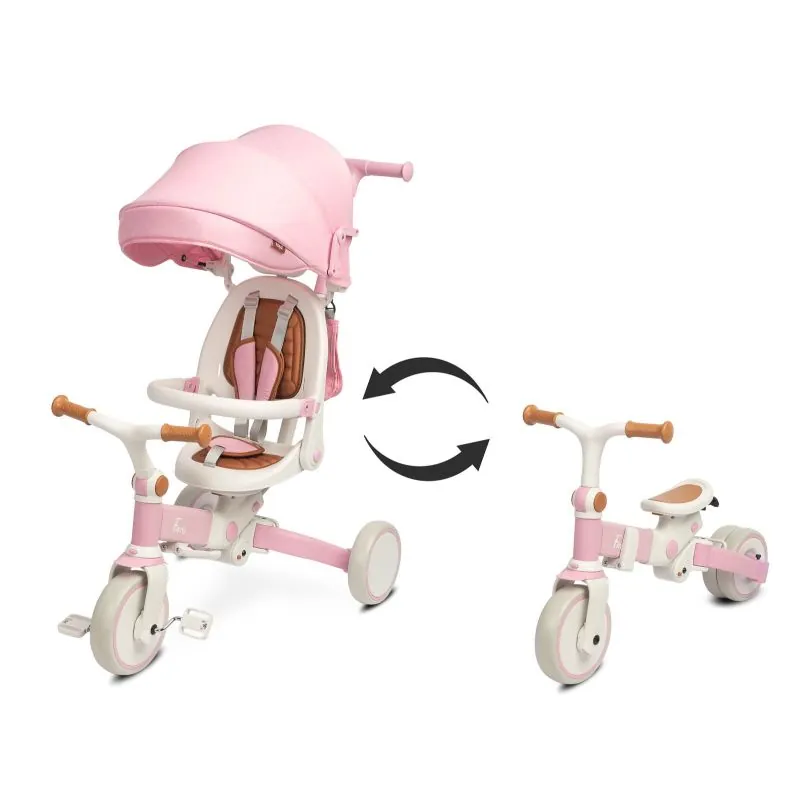 Daudzfunkcionāls trīsritenis bērniem līdz 25 kilogramiem;Paši mazākie izmantos kā trīsriteni, ko stumj vecāki;Trīsriteņa sēdeklis mainās pusēm;Pagarināts jumtiņš pret vēju vai sauli;Mīksts eko ādas sēdeklis;Atzveltne ar galvas balstu;Drošības jostas nodrošinās bērna drošību;Gumijas riteņi;Ir gulēšanas pozīcija;Somiņa papildu lietām pastaigu laikā;Regulējama augstuma stumšanas rokturis;Nedaudz vecāki bērni var izmantot kā trīsriteni vai līdzsvara velosipēdu;Saliekams rāmis, kas lieliski ietilps automašīnas bagāžniekā;Ir ērts nesšanas rokturis;Salocītie izmēri: 44 x 41 x 67 cm.;
