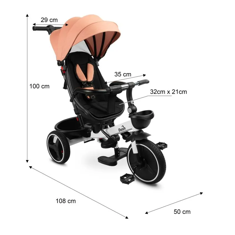 Trīsritenis Dash ir lieliska alternatīva ratiņiem. Piemērots bērniem līdz 25 kg.