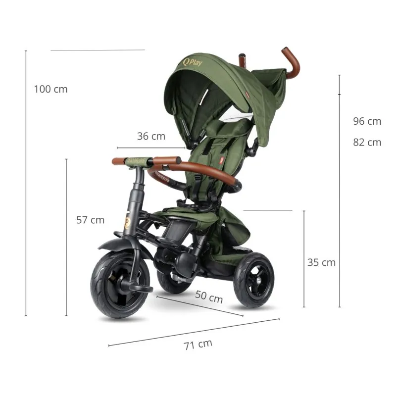 Qplay trīsritenis Rito Deluxe Rubber, Olive