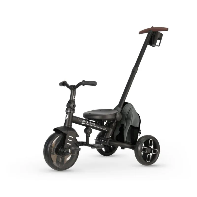 Kamēr bērns iemācās patstāvīgi vadīt un kontrolēt trīsriteni, vecāki stumjot trīsriteni regulēs braukšanas virzienu.