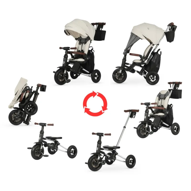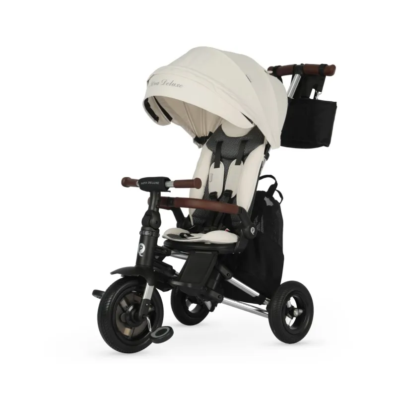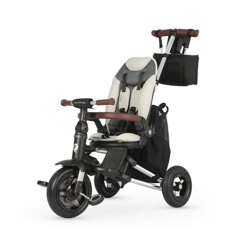 Qplay trīsritenis Nova Deluxe ir stabils un drošs, tam ir moderna alumīnija konstrukcija, ērts konturēts „360“ sēdeklis, kas ļauj braukt uz priekšu vai atpakaļ braukšanas virzienā. Montāžai nav nepieciešami nekādi instrumenti – ātrās salocīšanas sistēma ļauj salocīt trīsriteni ar dažiem vienkāršiem kustībām.