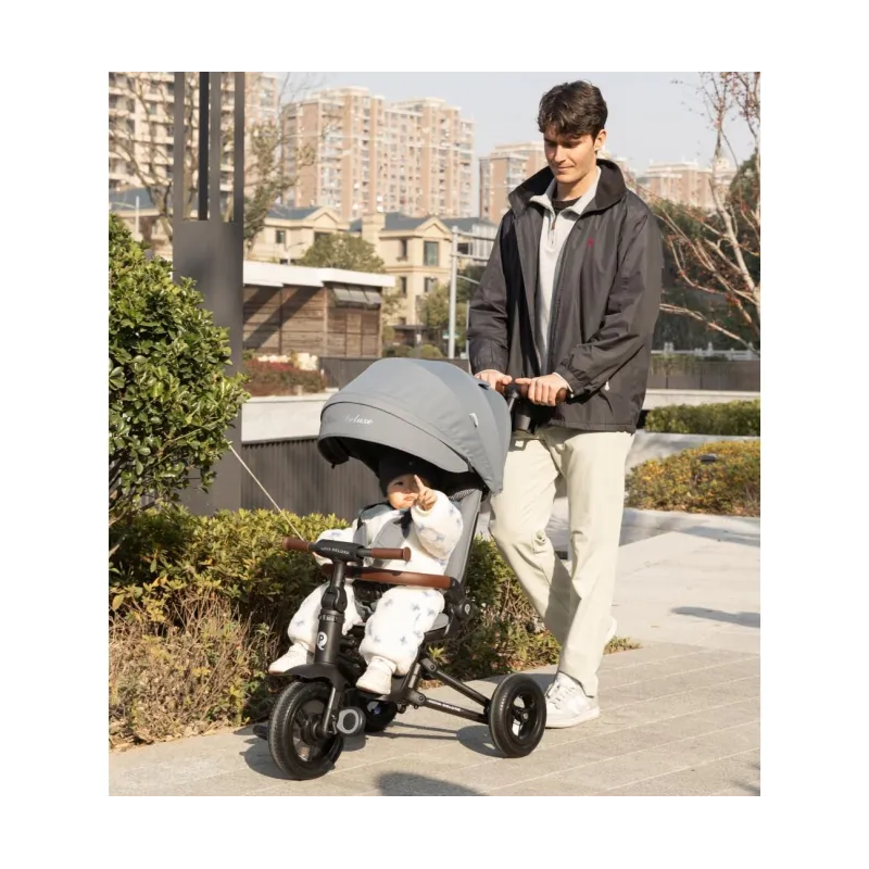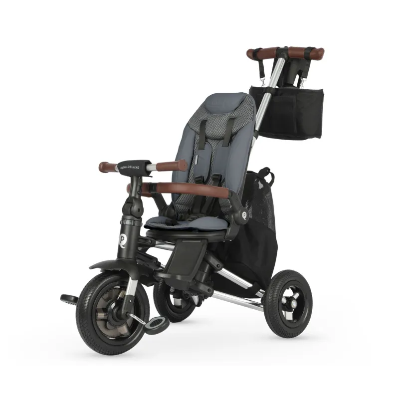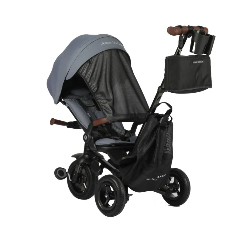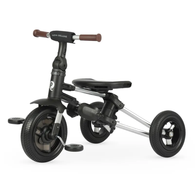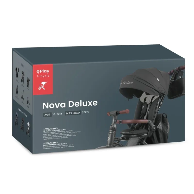 Qplay trīsritenis Nova Deluxe ir stabils un drošs, raksturojas ar modernu alumīnija konstrukciju, ērtu konturētu „360“ sēdekli, kas ļauj braukt uz priekšu vai atpakaļ braukšanas virzienā. Montāžai nav nepieciešami nekādi instrumenti – ātrās salocīšanas sistēma ļauj salocīt trīsriteni ar dažām vienkāršām kustībām.