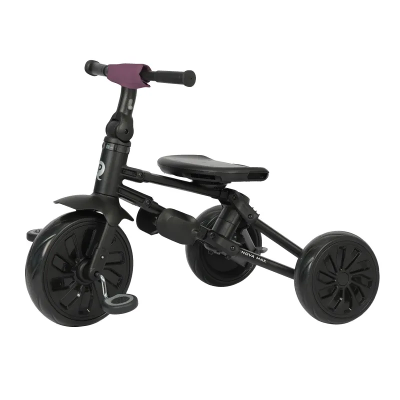 Qplay triratuks Nova Max ir stabils un drošs, raksturojas ar modernu alumīnija konstrukciju, ērtu konturētu „360“ sēdekli, kas ļauj braukt uz priekšu vai atpakaļ braukšanas virzienā. Montāžai nav nepieciešami nekādi instrumenti – ātrās salocīšanas sistēma ļauj salocīt triratuku ar dažām vienkāršām kustībām.