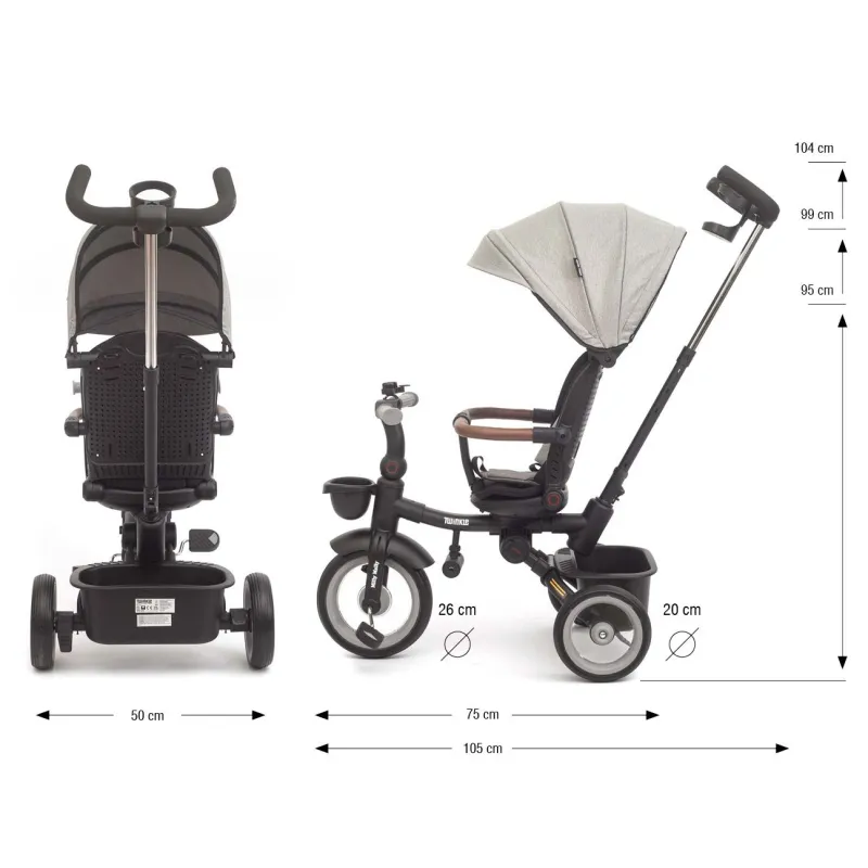 "Twinkle" trīsritenis apvieno ratiņu ērtības ar trīsriteņa funkcionalitāti - tas ir paredzēts bērniem no 12 mēnešu vecuma.
