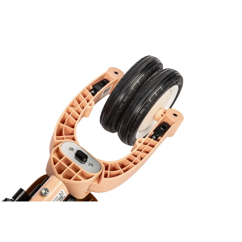 Riteņu diametrs: Priekšā 22 cm, aizmugurē 17,5 cm.;