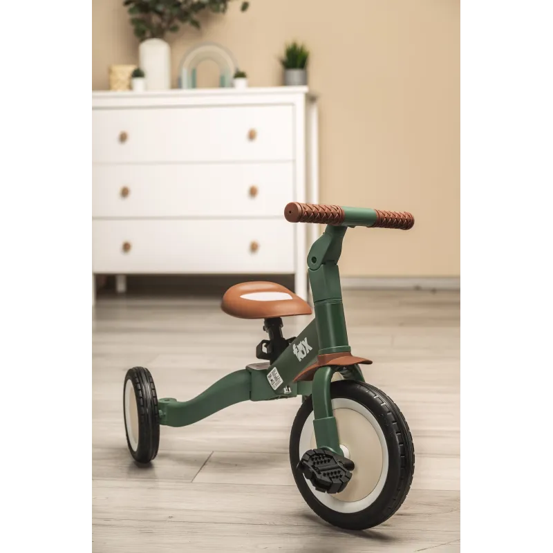 4 vienā transformators: Trīsritenis bez pedāļiem, trīsritenis, līdzsvara velosipēds, velosipēds ar pedāļiem. Paredzēts bērniem no 18 mēnešiem.