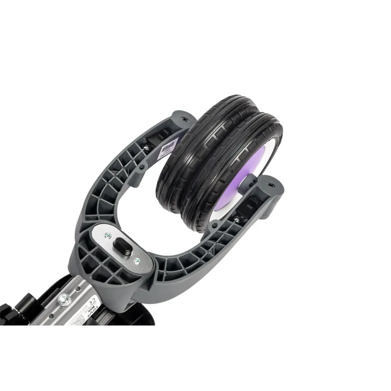 Riteņu diametrs: Priekšā 22 cm, aizmugurē 17,5 cm.;