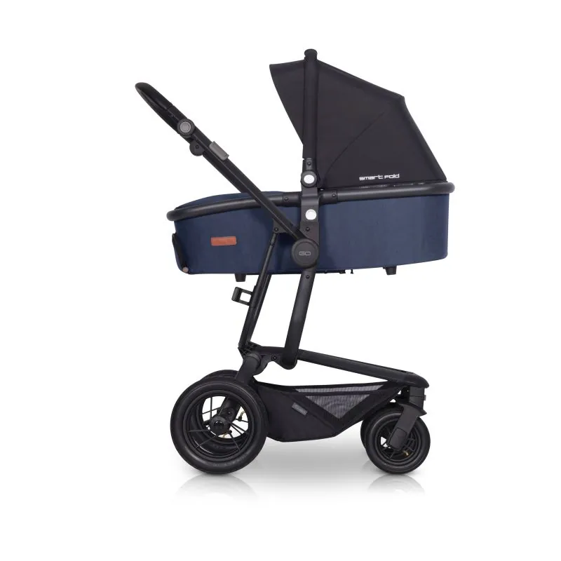 rāmis ar šūpuli bērnam līdz 9 kg (atbilst EN 1888-1:2018),šūpulis ar plakanu salocīšanas funkciju (Smart Fold funkcija),ventilācijas sistēma,matracis un polsterējums,plastmasas kājiņas šūpuļa apakšā (var novietot uz zemes),salokāms šūpuļa pārsegs ar noņemamu saules jumtiņu,pūšamie riteņi ar gumijas riepām un visu sezonu darbojošos protektoru,var regulēt ratiņu roktura augstumu,rokturis pārklāts ar ekoloģisku ādu,automātiska salocītā rāmja bloķēšana (atvieglo salocītā rāmja pārvietošanu),bremze bloķēta un atbloķēta, nospiežot no augšas,grozs zem ratiņiem.