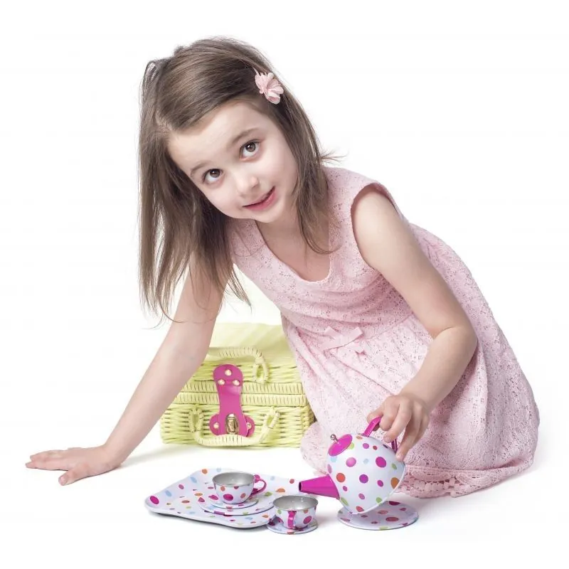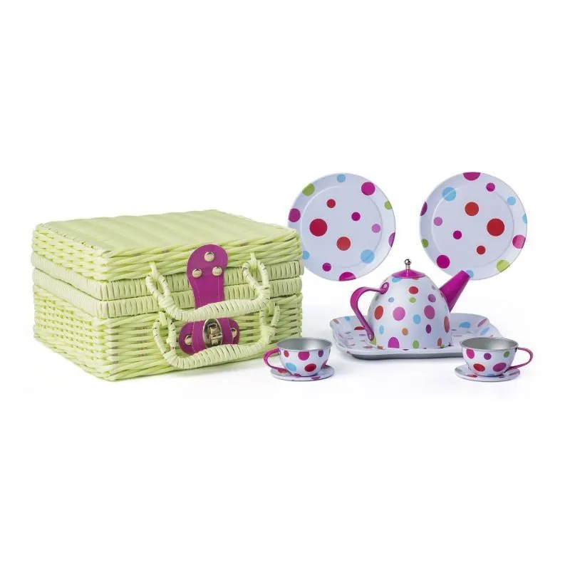 Skaists piknika grozs ar aizdari, kurā atradīsiet bērnu tējas dzeršanas komplektu.