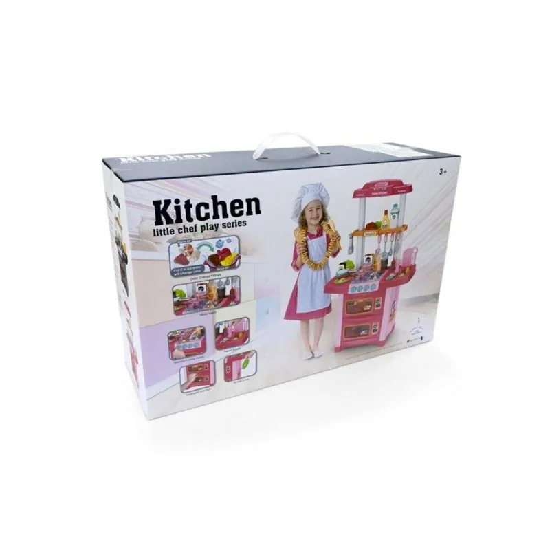 Spēļu komplekts ir izgatavots košās krāsās un aprīkots ar dažādiem spēles elementiem.Gaismas un skaņas efekti un trauku komplekts padarīs spēli vēl jautrāku.Rotaļlieta izgatavota no augstas kvalitātes un triecienizturīgas plastmasas.Šajā rotaļu virtuvē var atrast visu - izlietni, grilu, cepeškrāsni.Komplektā ir arī daudz rotaļu pārtikas produktu un trauku.Nepieciešamas 3 AA baterijas (nav iekļautas komplektā).Piemērots bērniem no 3 gadiem.
