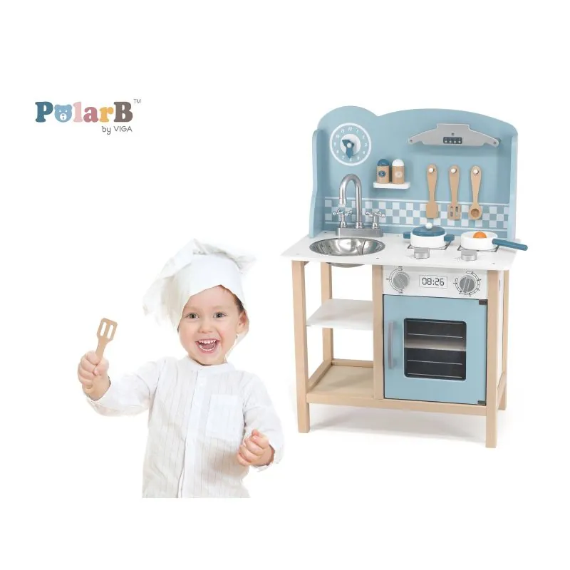 Bērnu koka virtuvīte, kas piemērota mazajam virtuves šefam spēlēties.