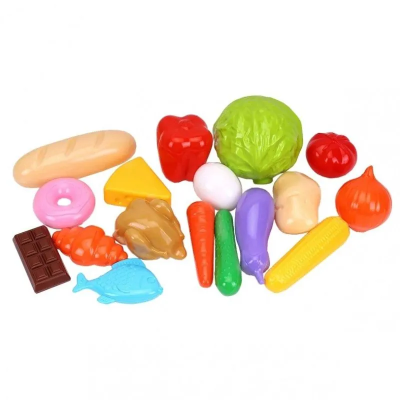 Interesantas un piemērotas rotaļlietas palīdz bērniem labāk iepazīt pasauli, apgūt jaunas lietas, attīstīt prasmes. Tāpēc ir svarīgi, lai rotaļlietas būtu saprotamas un balstītas uz bērnam pazīstamām lietām. Trauki, virtuves piederumi un rotaļu ēdiens – pirmie sadzīves priekšmeti, ar kuriem mazulis iepazīstas, jo ar tiem sastopas ikdienā. Tāpēc dažādi rotaļu augļi, dārzeņi, hamburgeri, virtuļi un konfektes ir tik interesanti visiem bērniem.Šis komplekts patiks lielākajai daļai bērnu. Rotaļu ēdiens papildinās rotaļu virtuves un traukus, padarīs spēles reālistiskas un interesantas.Komplektā ietilpst pat 17 pārtikas produkti: Augļi, dārzeņi, kruasāns, ola, zivs, bulciņa un citi pārtikas produkti. Viss ir iepakots ērtā iepirkumu grozā.Rotaļlieta piemērota bērniem, kas vecāki par 3 gadiem.Izmēri 27 х 18.5 х 14 cm